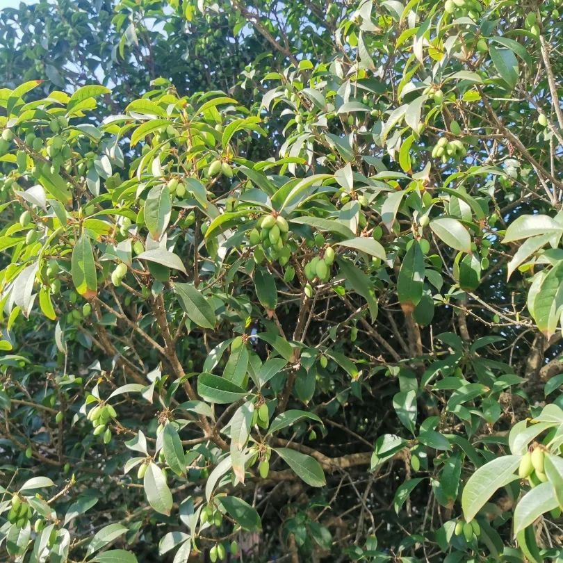 桂花果,别名木犀果、桂花子、桂花树子等。桂花果在生长时为青绿色的椭圆形,成熟后则变为紫黑色,内里黄白色富油质,微有香气,稍微用力一挤,里面就有果汁流出来,而且仅有很薄的果肉,包裹的是一颗大的果核。桂树通常每年9—10月开花,次年4—5月果熟,人们繁殖桂花树通常用果实播种。