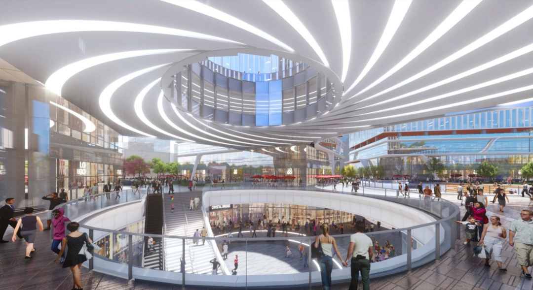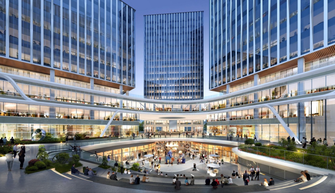 在设计上,项目最大的亮点是“开放”。晶耀虹桥由世界著名建筑设计公司NBBJ负责整体设计,得益于轨交2号线、15号线的双地铁上盖的优势,项目运用全新的设计理念,融入立体城市功能,通过多首层的创新空间设计,为市民提供贯穿地上、地面与地下的立体活动空间,实现办公、商业与休闲的无缝连接,形成一体化街区。