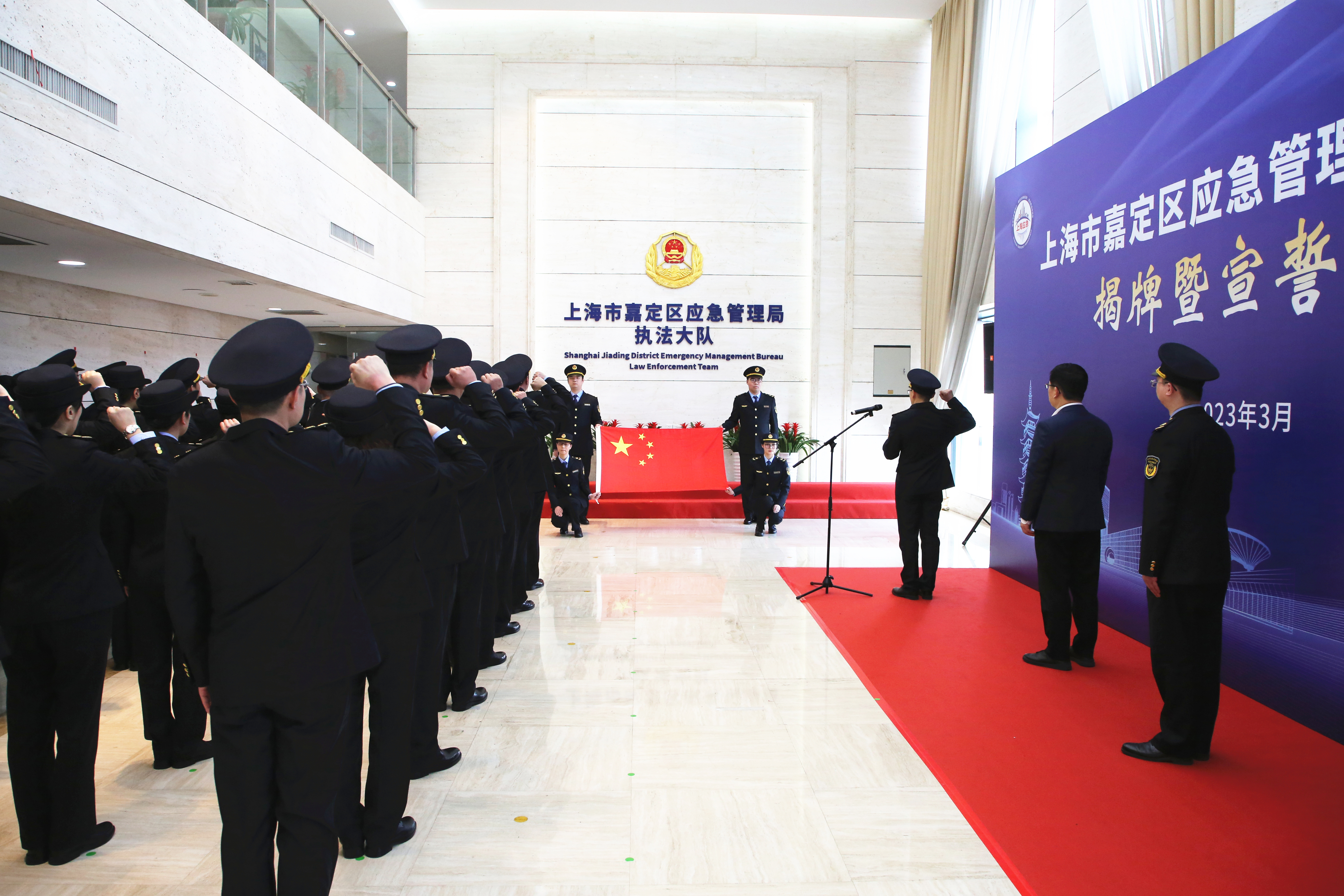 此次揭牌成立的嘉定区应急管理局执法大队目前共有23人,是嘉定区应急管理局所属的行政执法机构,整合了嘉定区应急管理局承担行政执法职责的内设机构以及区安全生产监察大队。