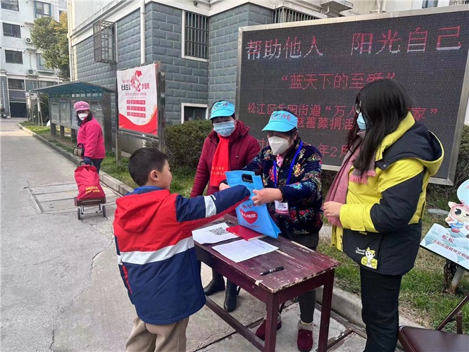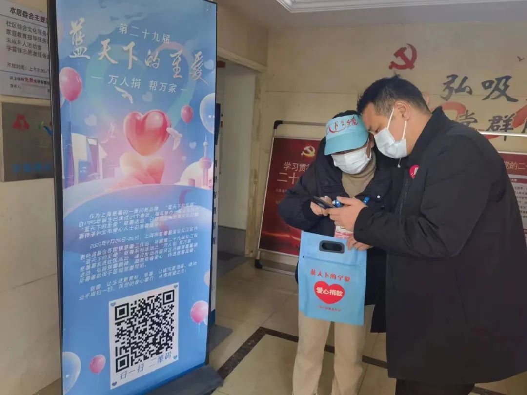 志愿者们头戴印有“蓝天下的至爱”标志的小蓝帽,手持蓝色募捐袋,穿梭于大街小巷。在一声声亲切的问候、一句句感谢的话语中,爱心源源不断地涌来。自2月25日启动以来,截至3月1日,第二十九届松江区“蓝天下的至爱”之“万人捐帮万家”慈善募捐进社区活动共募善款25.3万元,其中线上捐赠13.6万元、线下捐赠11.7万元,将全部用于区内困难群众的帮扶。