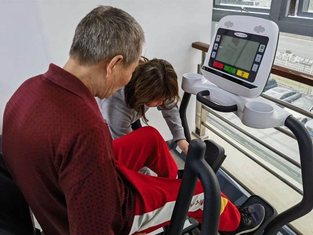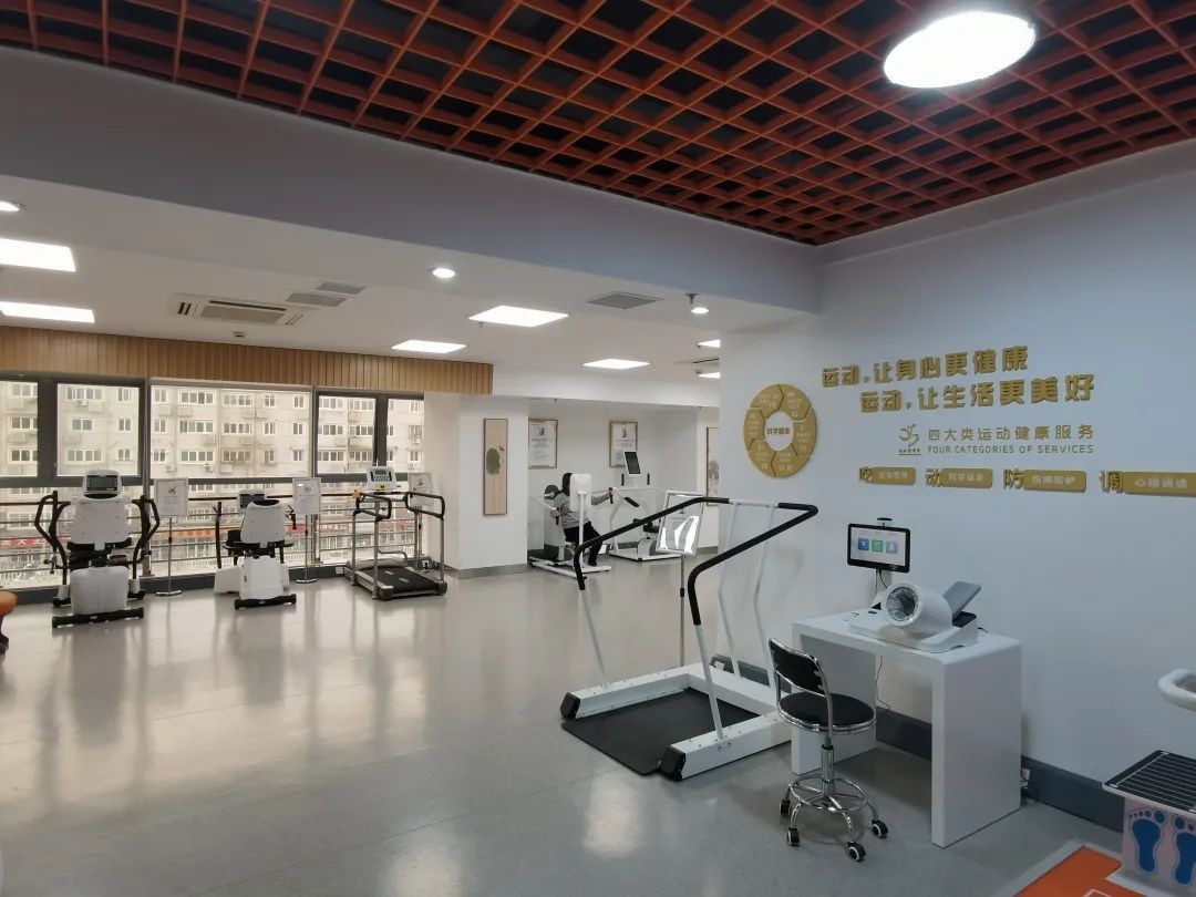 长者运动健康之家将100平方米的空间分为检测区、有氧区、等速力量训练区、微循环促进区、拉伸区5个区域,共15台各类机器供前往锻炼的老人选择。