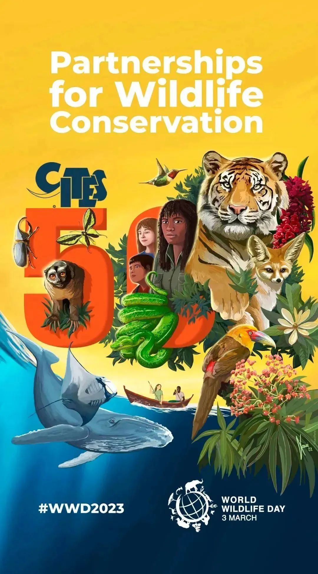 2023年3月3日是第十个世界野生动植物日,全球主题为“野生动植物保护伙伴关系”,中国主题为“广泛发动社会力量 共同推进物种保护”。