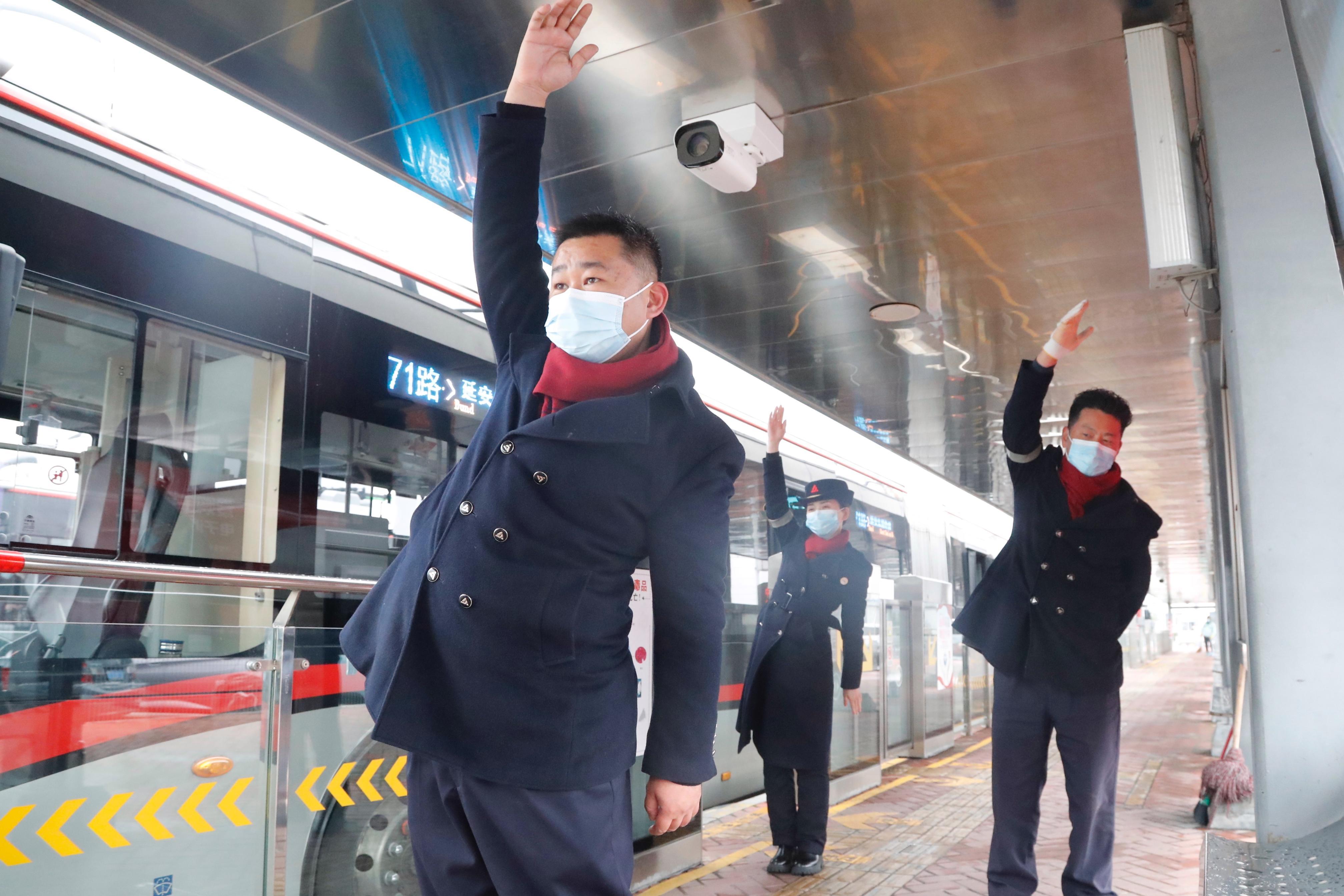 “来,跟着我的口号做,扭扭脖子,抖抖肩膀,按按太阳,拉拉耳朵……”在申昆路枢纽站终点站站台,入党积极分子、见习队长唐骏杰带领着驾驶员和乘务员一起做起了醒脑工间操,他告诉记者:“工会真是‘娘家人’,知道我们的需求,我有困意的时候用这个喷雾,马上就消除了。”在各终点站调度室,车队工会专门购置了冰醒喷雾、口罩爆珠、清凉薄荷精油等醒脑物品,统一放置,供有需要的人使用。