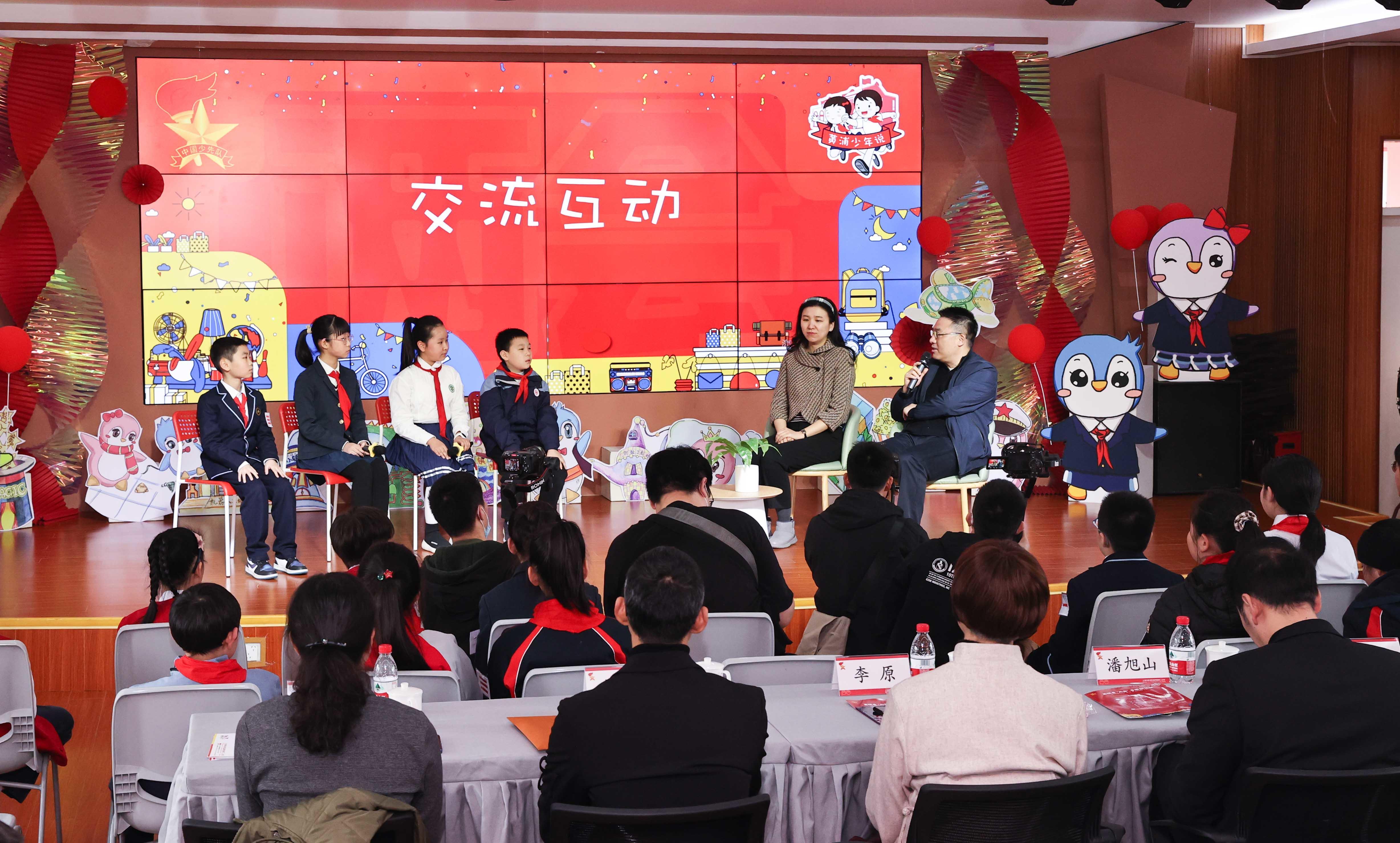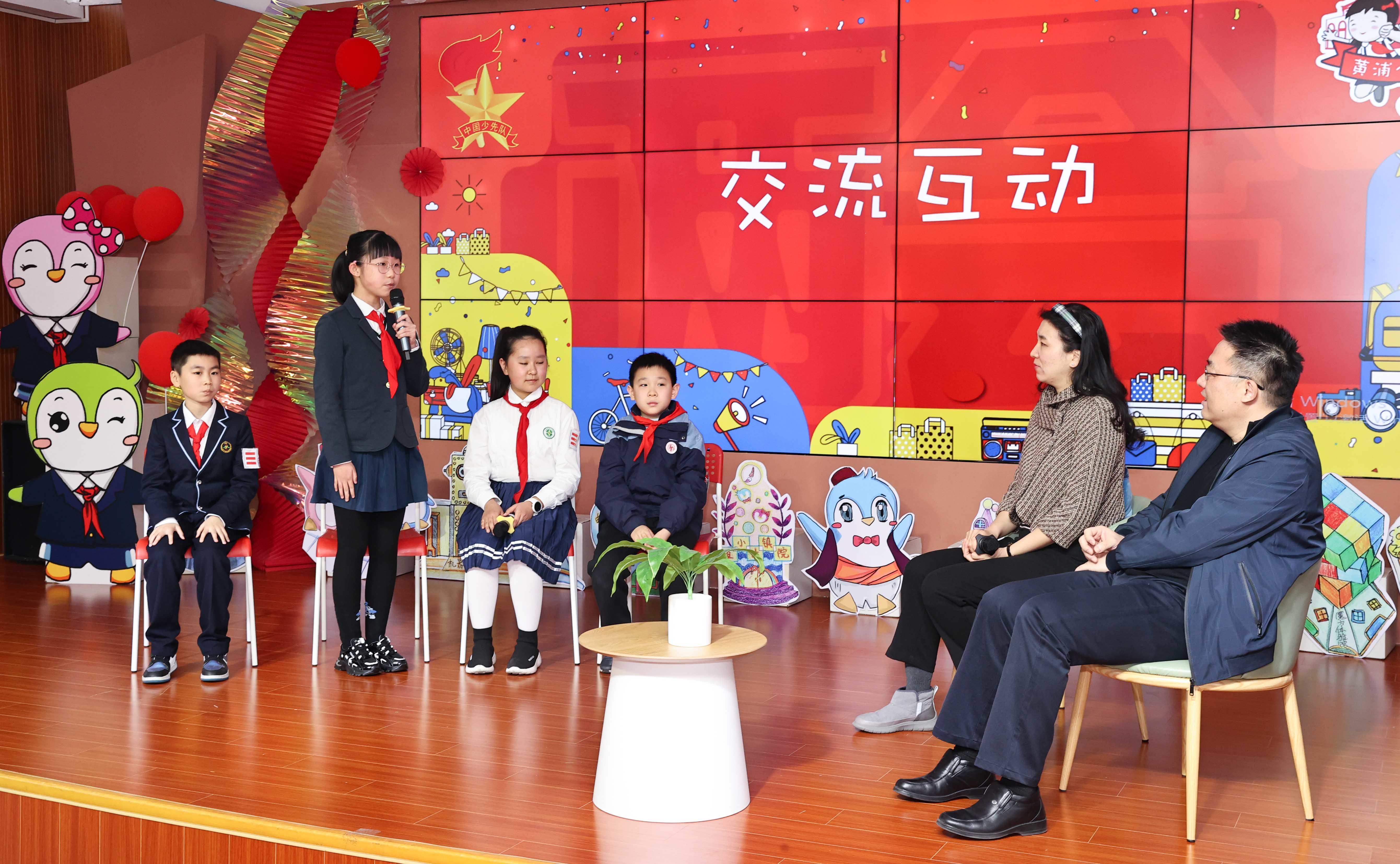 在“互动访谈”环节,来自黄浦学校、上海师范大学附属黄浦梅溪小学、蓬莱路第二小学、上海市第十中学的小队员代表们对参加了十年“全国两会”的两届全国政协委员王美华,黄浦区政协委员任美霏、石浩强进行了现场采访。委员们关于“两会”知识的科普解答,让小队员代表们收获满满。