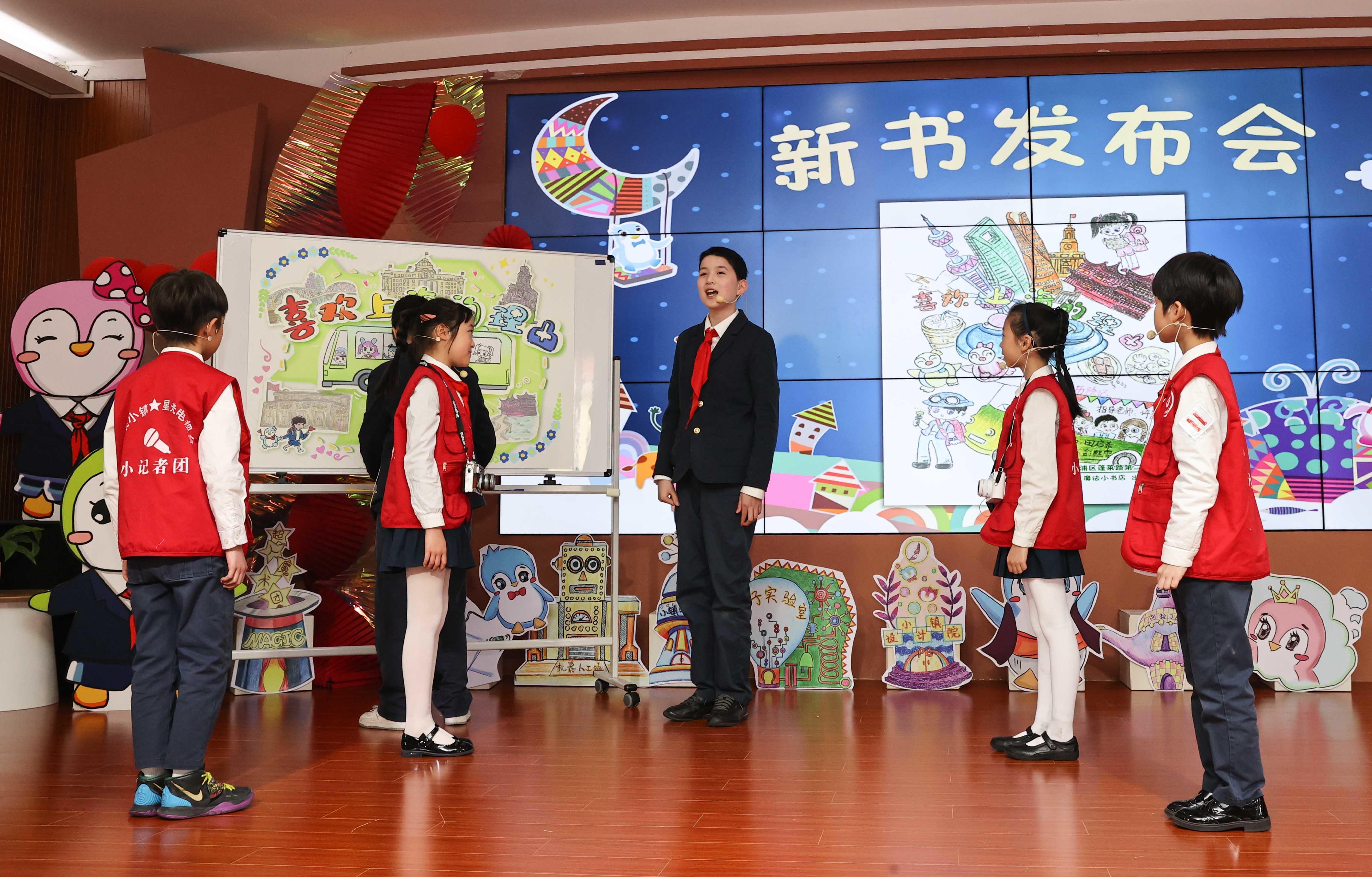 现场,《喜欢上海的理由》手写手绘书发布。这本书,可是蓬莱路第二小学的“1730+”小队的小队员们在与政协委员一起开展了社区寻访活动后,自己创编的。在新书签售环节后,“蓬莱小镇”书市购书活动拉开帷幕,大家兴致勃勃地用“小镇货币”购买起了小队员们的书。