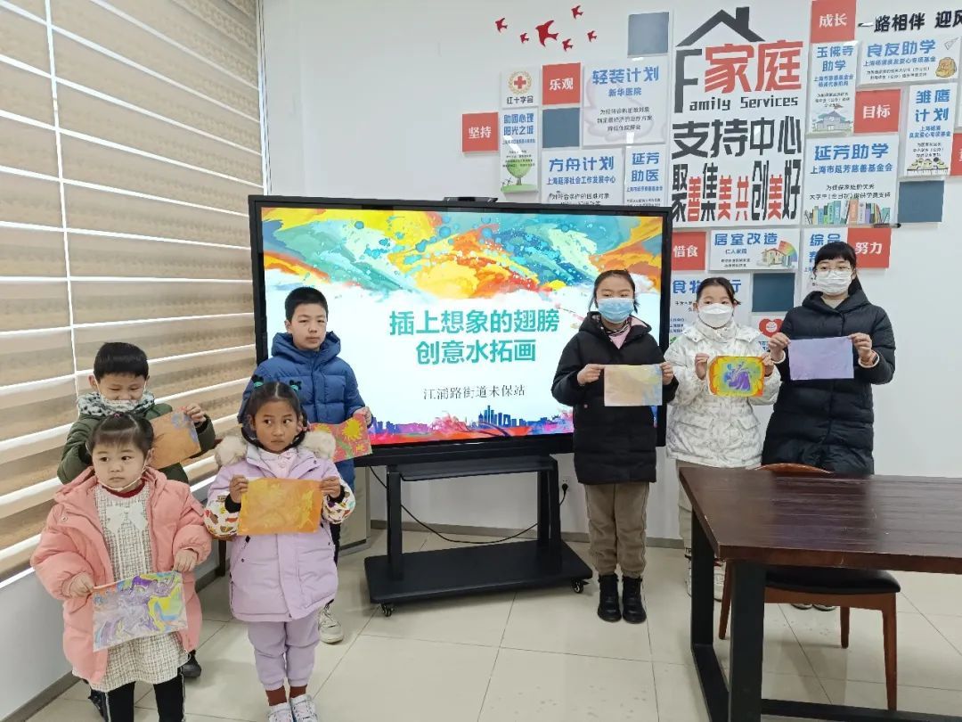 近日,江浦路街道未保站开展了一堂别开生面的美育课,通过创意水拓画的形式,为孩子们插上想象的翅膀,用艺术点亮孩子们的童年。