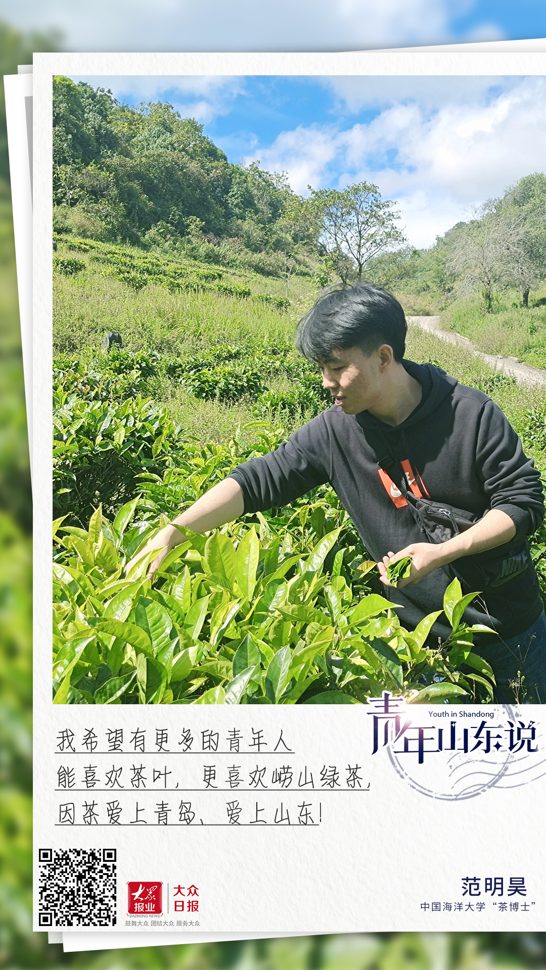 “我希望崂山绿茶能够被全国的消费者所接受和喜爱,同时作为一名青年人,我更希望有更多的青年人能关注茶叶、喜欢茶叶,更喜欢崂山绿茶,因茶爱上青岛、爱上山东!”范明昊这样推介“山东茶”。