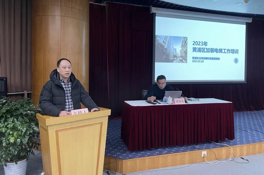 培训首先播放了2022年黄浦区既有多层住宅加装电梯纪录片,区房管局介绍了市、区加梯实施情况、2023年工作目标、基本流程、政策机制、特色做法和重点关注问题。