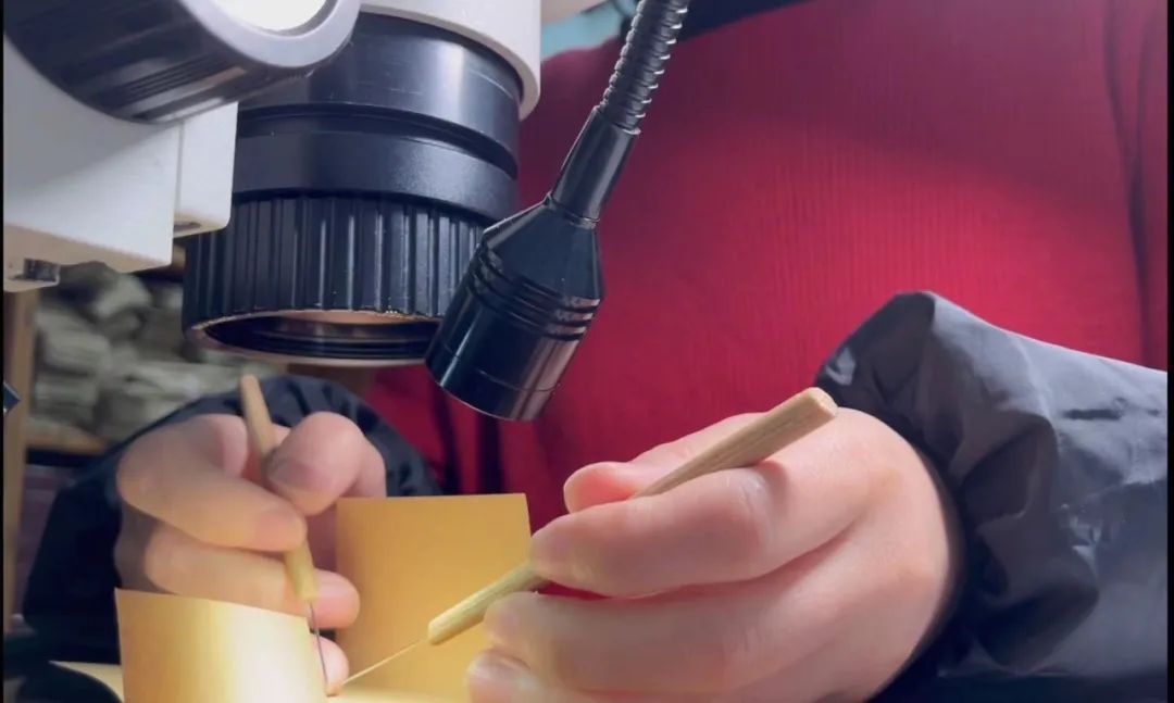 随后带回标本馆内,在显微镜下解剖观察(右)