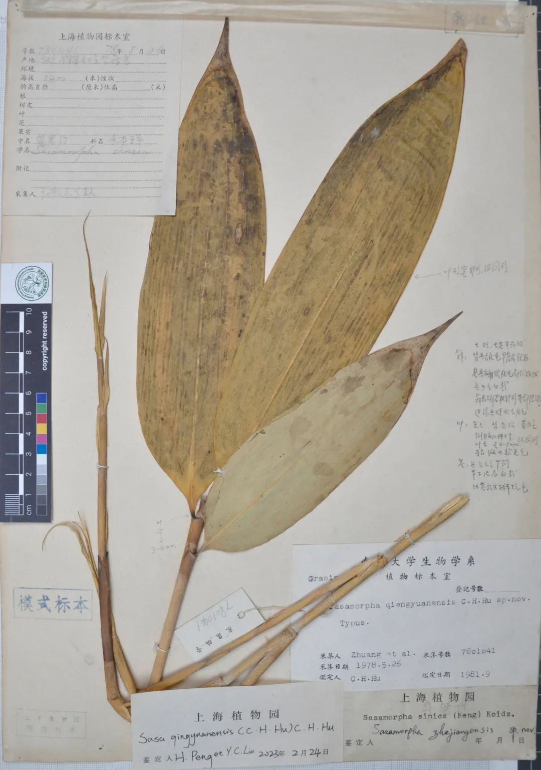 上海植物园标本馆 庆元华箬竹模式标本