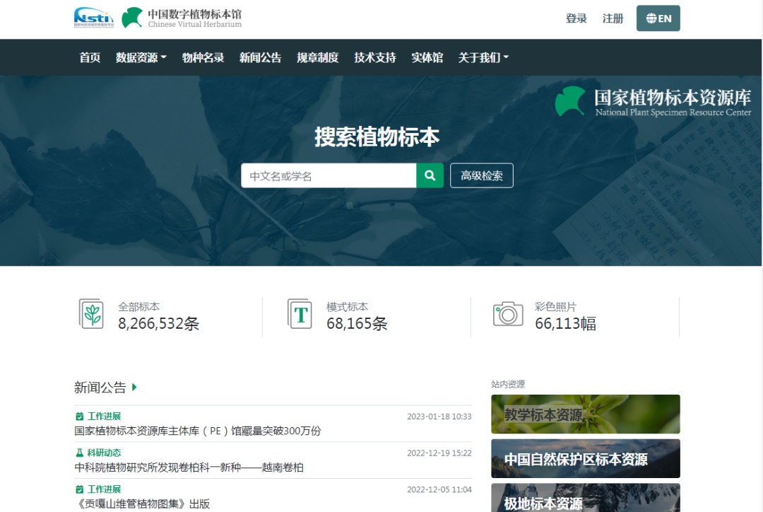 中国数字植物标本馆网页界面(图源:CVH)