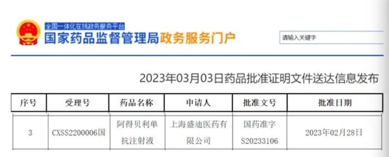3月3日,国家药品监督管理局批准恒瑞医药全资子公司——上海盛迪医药有限公司自主研发的PD-L1抑制剂阿得贝利单抗注射液(商品名:艾瑞利?)上市,该药品联合依托泊苷和卡铂用于广泛期小细胞肺癌(ES-SCLC)的一线治疗。