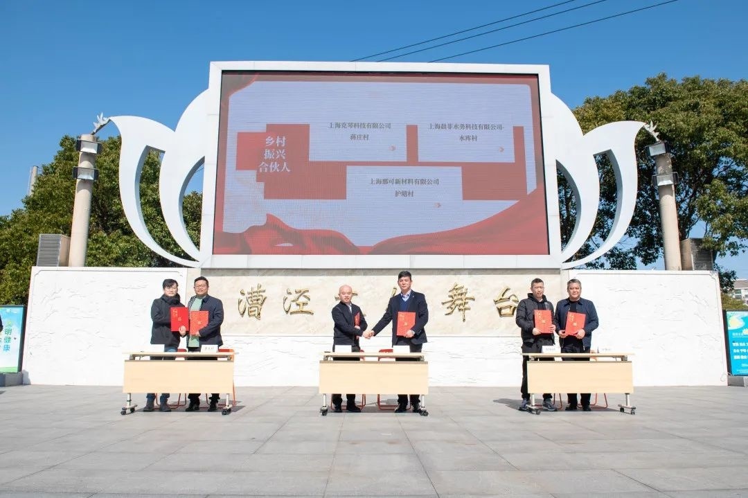另外,上海克琴科技有限公司与蒋庄村、上海晨菲水务科技有限公司与水库村、上海那可新材料有限公司与护塘村进行了“乡村振兴合伙人”金色公益项目签约。