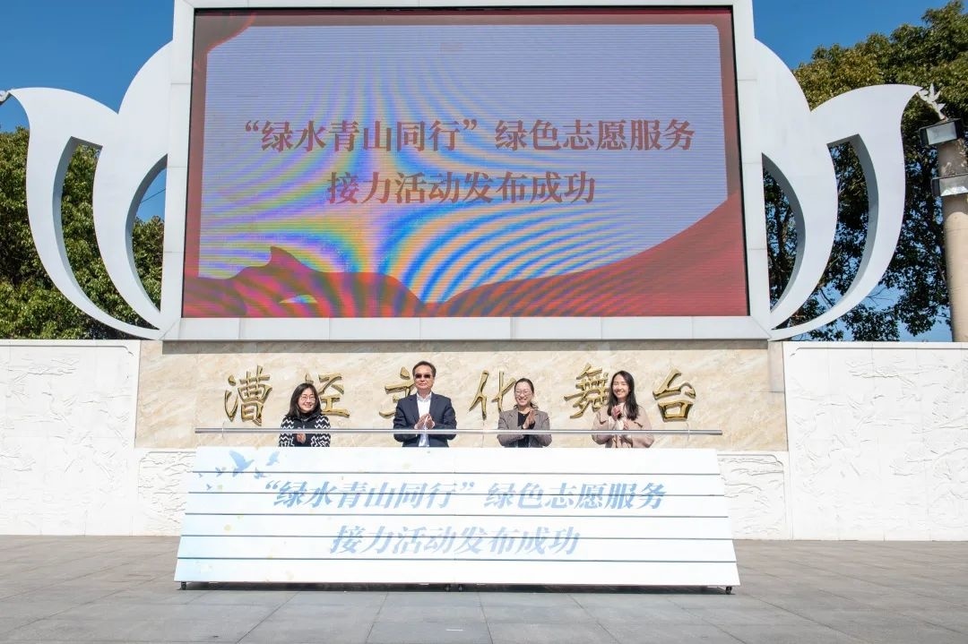 活动现场,漕泾镇和上海化工区发展公司联合发布了“绿水青山同行”绿色志愿服务接力活动。