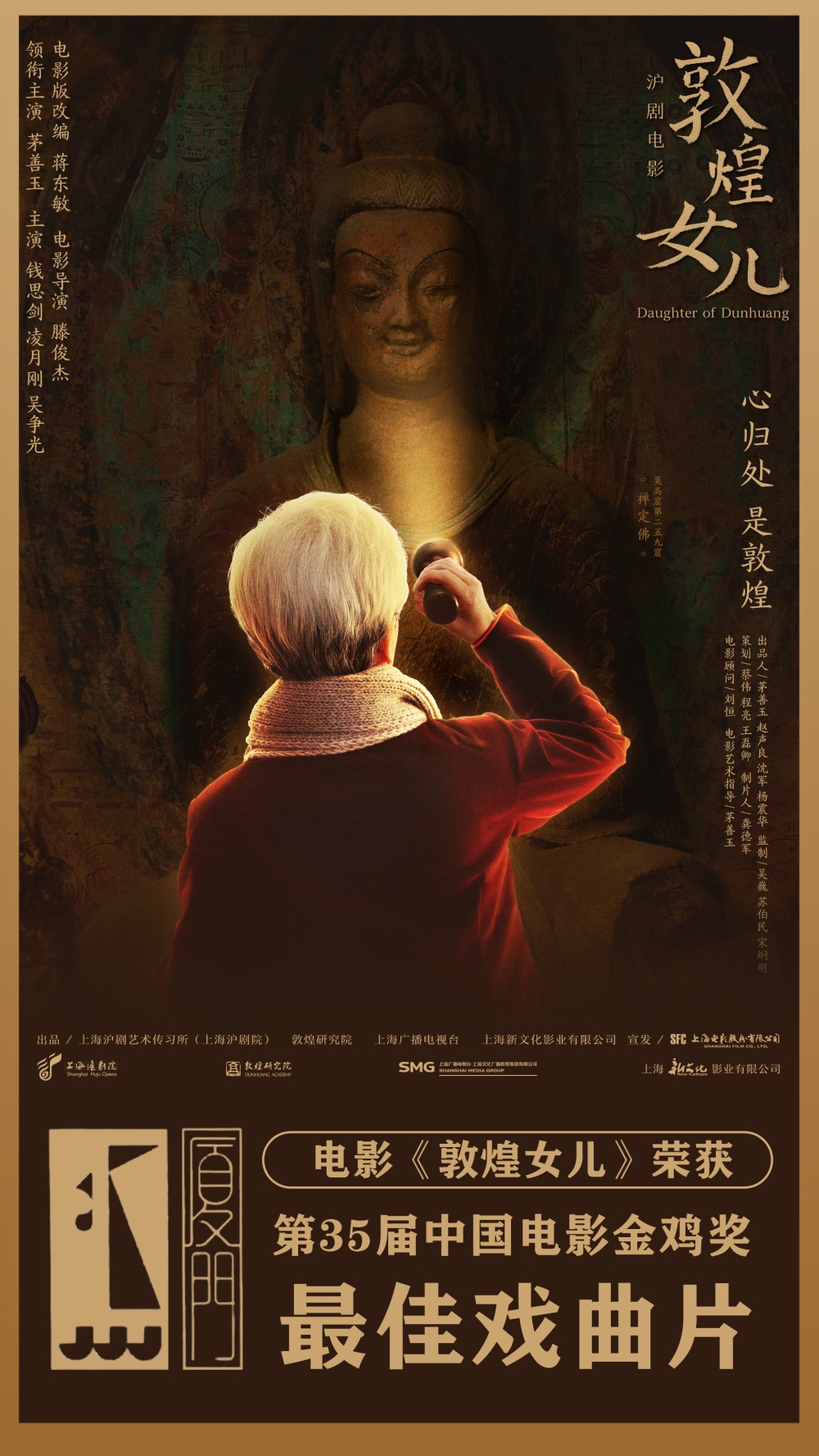 沪剧《敦煌女儿》可谓十年磨一剑,随后上海市文联副主席、上海视协主席、国家一级导演滕俊杰领衔的摄制团队又用了两年时间将其打磨成电影。电影金鸡奖的颁奖典礼上,沪剧实景电影《敦煌女儿》被给予了高度评价:“影片运用电影语言彰显戏曲的审美优势,努力实现中国传统戏曲艺术的创造性转化与创新性发展,影片所赞颂的莫高精神为新时代的戏曲电影呈现出历史与美学的新境界。”