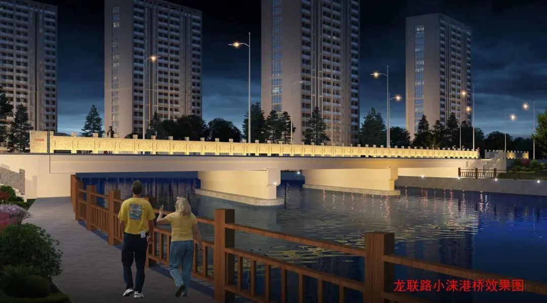 “两座桥在上部结构采用的方式略有不同,其中,在龙联路(规划小涞港桥东侧接坡—涞港路)上的桥梁长约为60米,上部结构采用了刚接空心板的形式;另一座桥梁长约70米,上部结构采用了低高度钢混组合梁+刚接空心板的形式。”区交通委相关负责人介绍,根据桥梁方案,从降低梁底标高、减小结构高度、优化纵断面设计等多面入手,风格简约现代,桥型线条优美,路、桥、景和谐自然。