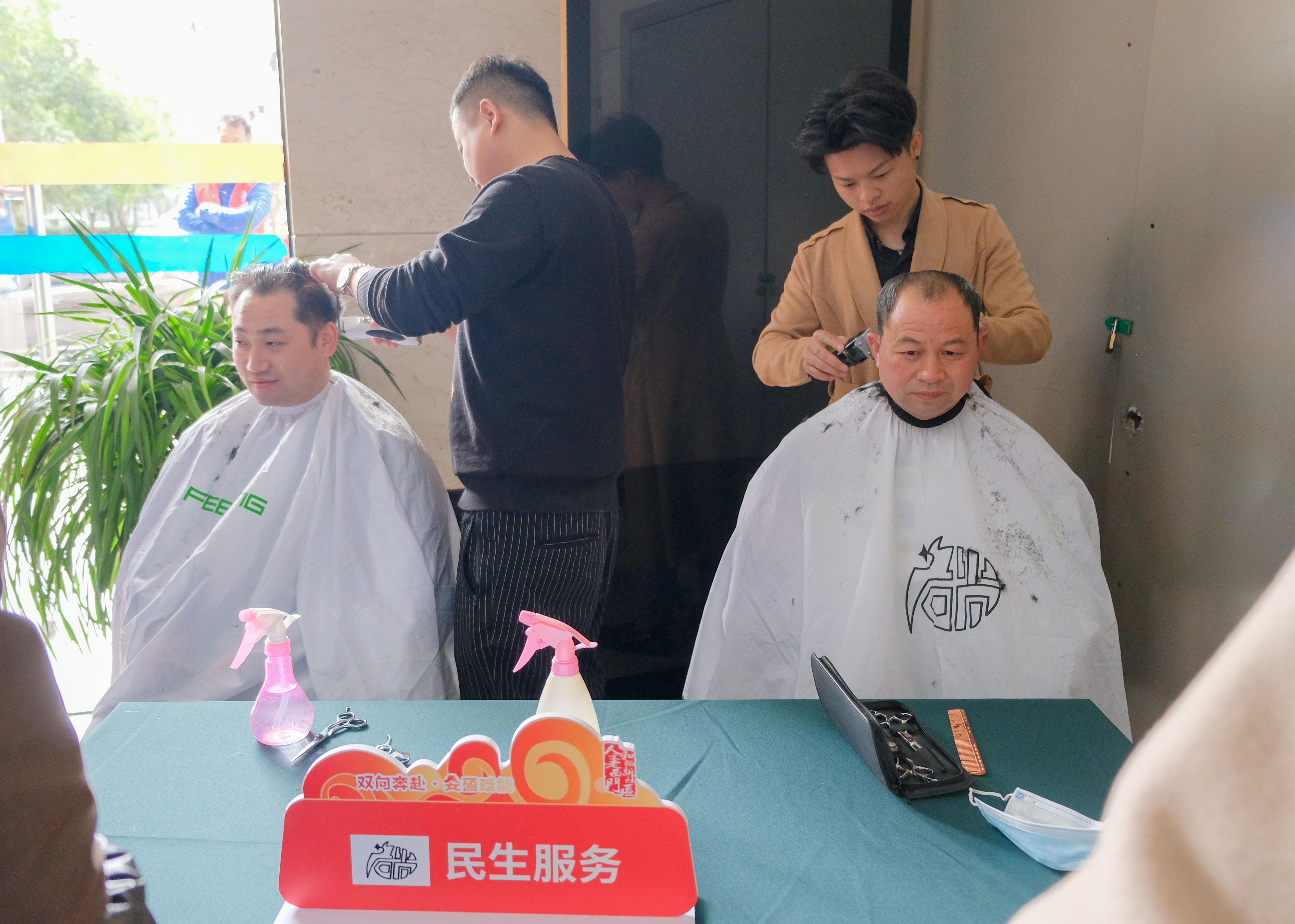 理发摊位前,市民已经开始排队等候。在专业“托尼”老师的“咔”“咔”“咔”声中,社区居民们换了新发型,更显精神了。剪完头发的邵阿姨开心地说:“非常感谢街道和爱心企业,免费为大家理发,剪的水平也很高,我觉得在老城厢的生活越来越幸福了。”