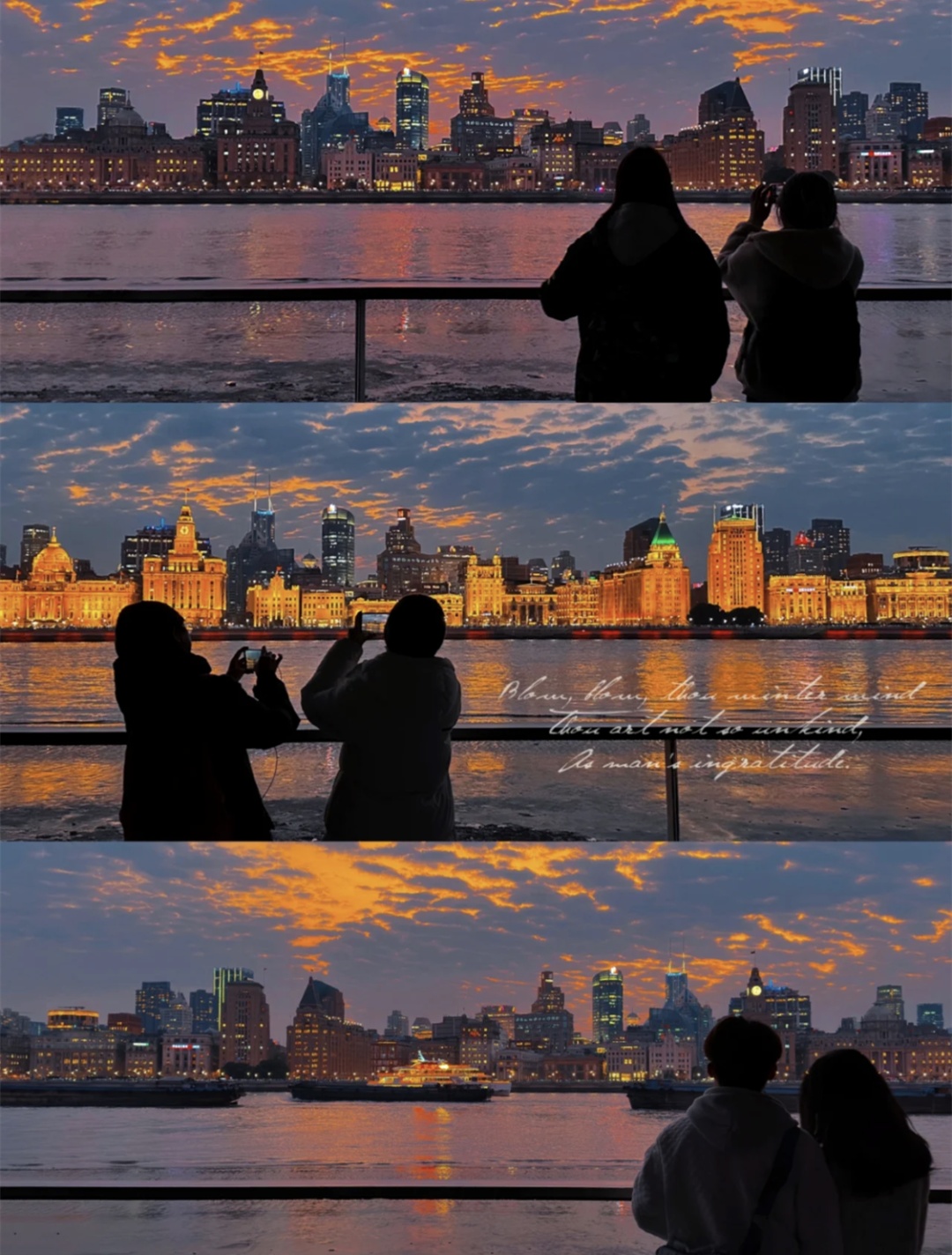 最佳拍摄时间:最好在日落前到达,现在上海日落时间在5点左右,6点外滩亮灯;夏季外滩亮灯时间为7点