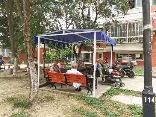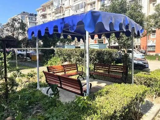 为小区老年群体提供一个更舒适便捷的休息环境,居委通过组织居民开放式讨论会,居民代表们提出建设凉亭的意见,最终由居民投票通过在小区内添置便民凳和遮阳遮雨棚,给老人们建造一个可以聊天休息的场所,此举一出,得到了居民们的一致称赞。