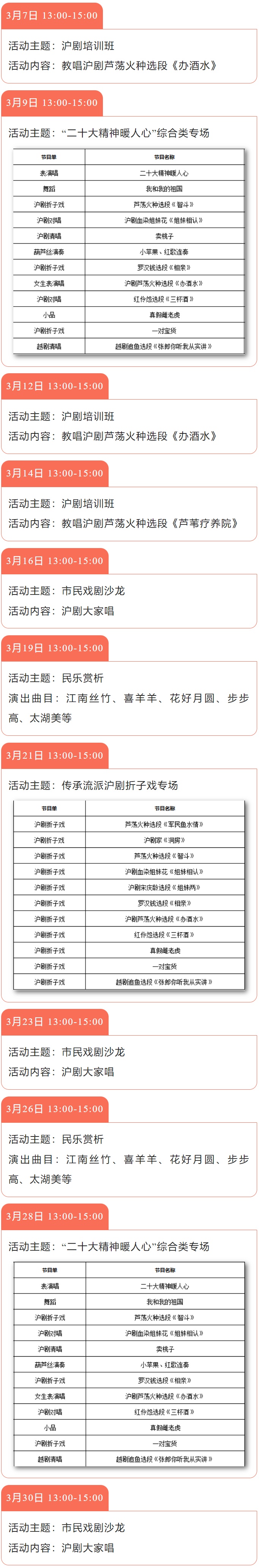 为使“冷江雨巷”焕发活力,进一步推进文化旅游的深度融合,充分满足当地市民群众的精神文化生活,体现公益化、人性化、本地化的“三化”原则,庄行老街“东兴楼”“听真戏院”现向市民群众免费开放。欢迎大家前来参与!3月活动安排如下: