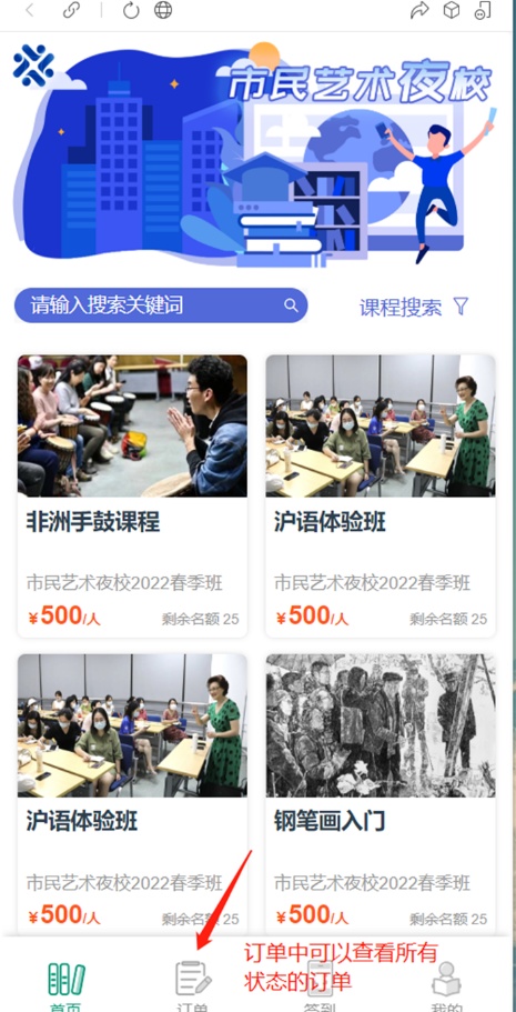 关注“上海市群众艺术馆”,点击菜单栏中的“市民夜校”进行报名