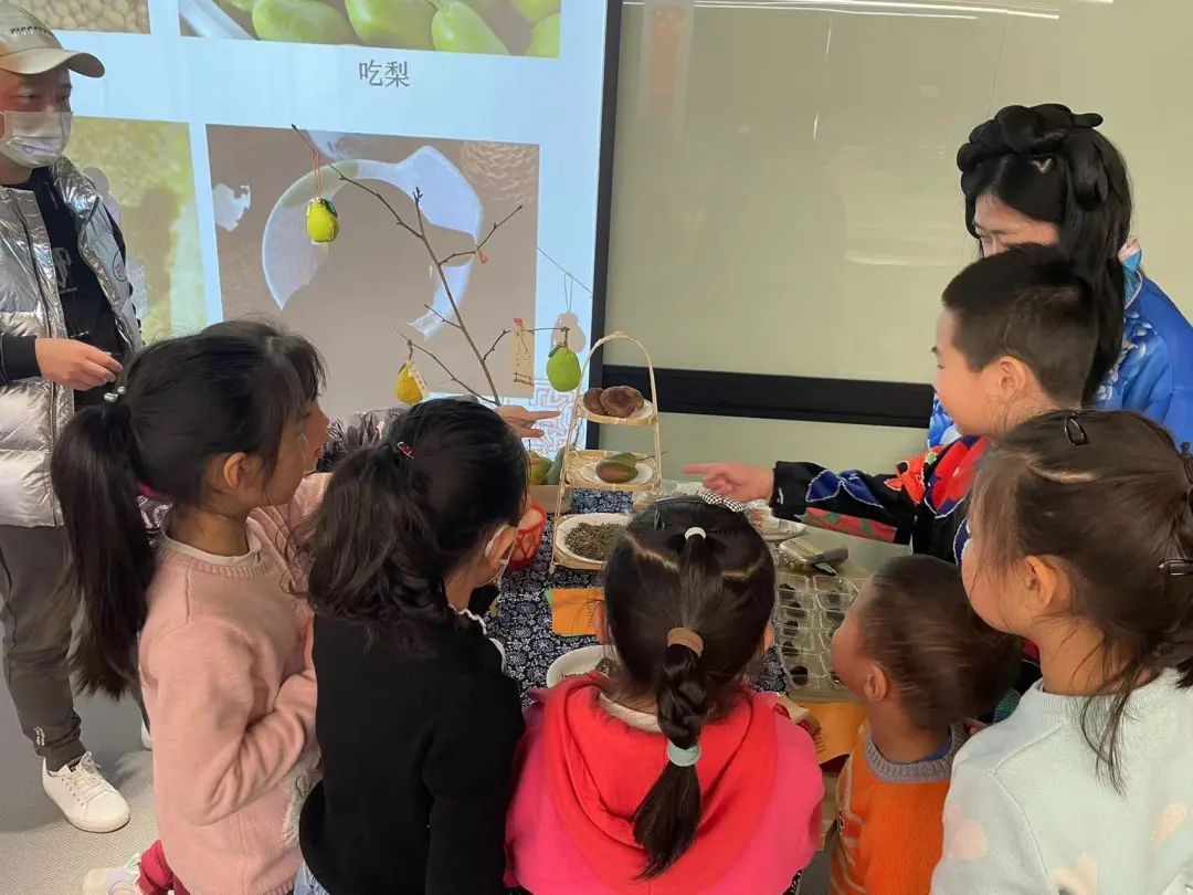 活动中,孩子们跟随老师学习汉服礼仪传承传统文化,随后用小组竞赛的形式进行二十四节气诗歌吟诵及赏析。老师会对节气民俗及“三候”知识进行讲解并用有奖竞答的游戏加强记忆,最后因惊蛰有吃梨的习俗,孩子们还与家长一起进行了布梨手工制作。