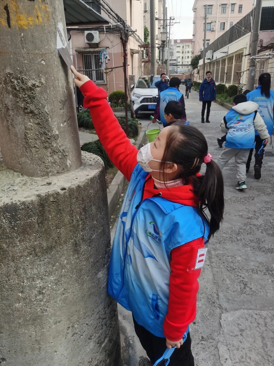 汇成一村居民区和徐汇新城居民区里的“亲子啄木鸟”们,手持扫帚、小桶、抹布等工具,一起对小区主干道、绿化带、楼道等进行清扫。大家不怕脏,不怕累,齐心协力,努力为社区创造一个干净整洁的生活环境。