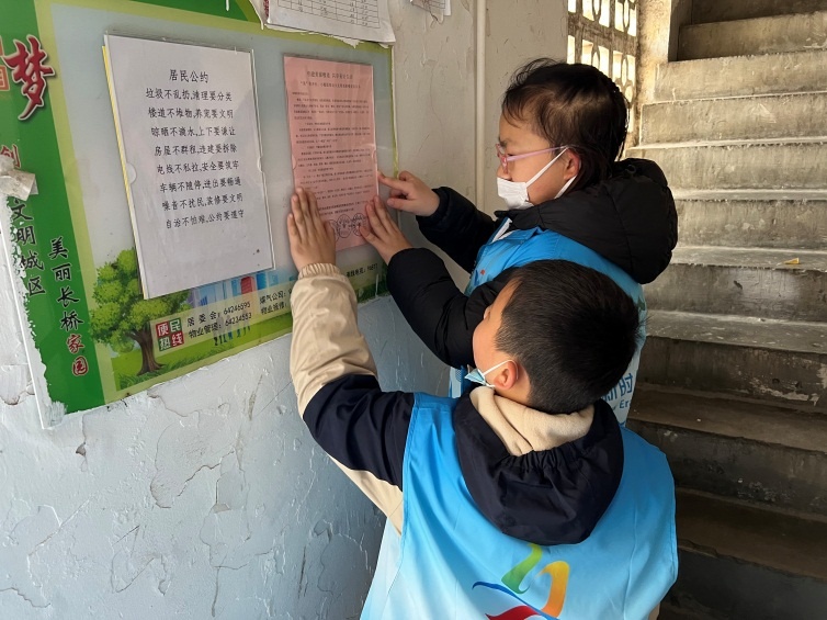 长桥新二村居民区的“小啄木鸟”在清理完道路边绿化带里的垃圾后,又向老志愿者取经怎样打造美丽楼道,了解楼道文明要注意什么。居民公约、楼道消防、严禁乱堆物……“小啄木鸟”知行合一,纷纷表示会做好楼道小主人。
