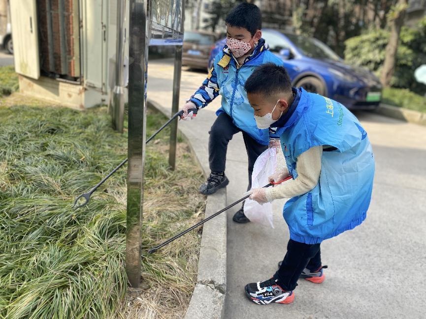 一大早,长桥八村居民区里的小小志愿者们在家长的带领下,拿着清洁工具在小区绿化带中、道路上仔细拾捡着烟头、果皮、塑料外包装、餐巾纸等垃圾。一个个忙碌的小身影,在蓝天碧草间跳动,“地毯式搜索”各式垃圾。在捡垃圾的同时,小朋友和家长们还在完成一项“寻找猫猫”的任务。一找到小区内不文明流浪猫喂养点,居委工作人员就在现场向小朋友们科普该如何正确对待流浪猫,如何更好地兼顾喂养小动物与社区环境美化。