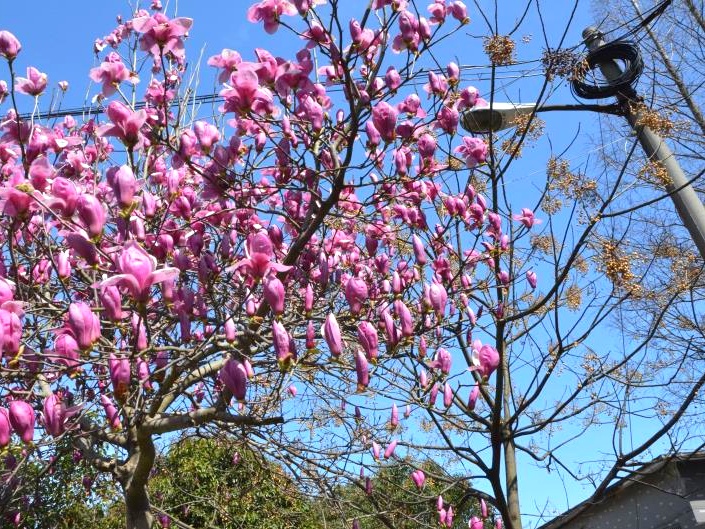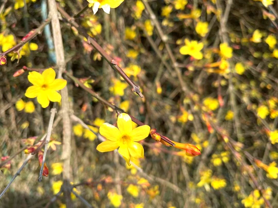 弥漫在阳光里的春日气息愈发浓稠,山茶花、梅花、油菜花、迎春花争先恐后地盛放着,松针变得更绿,水杉抽出略带鹅黄的新叶。