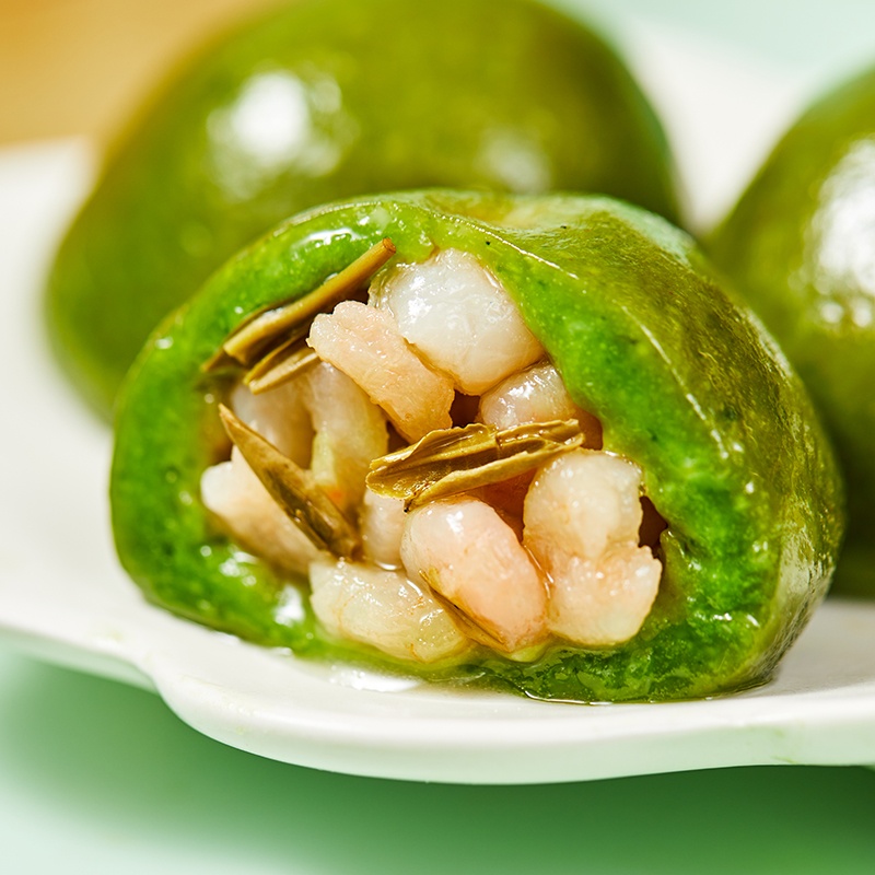 今年的青团还将一些时令的特色菜包入青团,可以当作午晚餐桌上的一道菜肴。比如“蔡长青×王家沙荠菜鲜肉青团”“腌笃鲜青团”“龙井虾仁青团”等,其中“龙井虾仁青团”里面包含了满满的新鲜河虾仁以及龙井茶叶。青团下午茶系列则打造了蔡长青和溜溜梅联名的“一口青梅青团”“一口红提乳酪青团”,一口系列将传统的青团的大小,缩小到一口一个,让青团成为一种可以方便地在办公室分享的休闲零食。