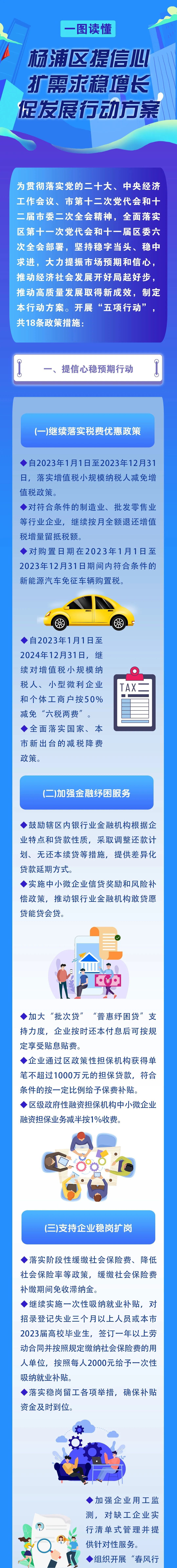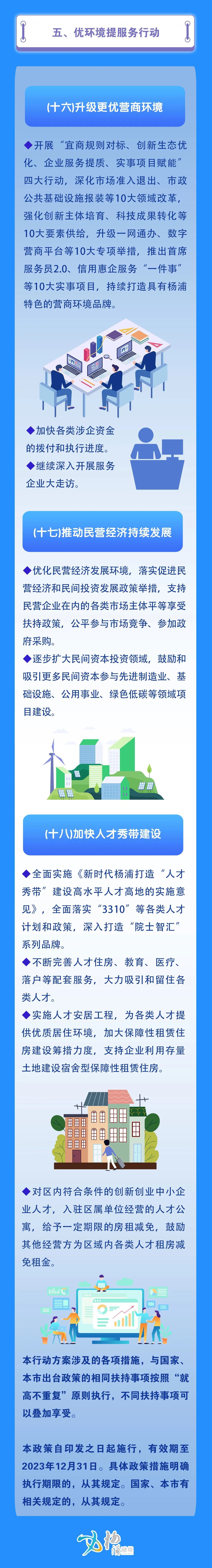 近日,杨浦区制定了《杨浦区提信心扩需求稳增长促发展行动方案》,将开展提信心稳预期、扩需求促销费、稳增长扩投资、促发展强主体、优环境提服务等“五项行动”,共18条政策措施,详见↓