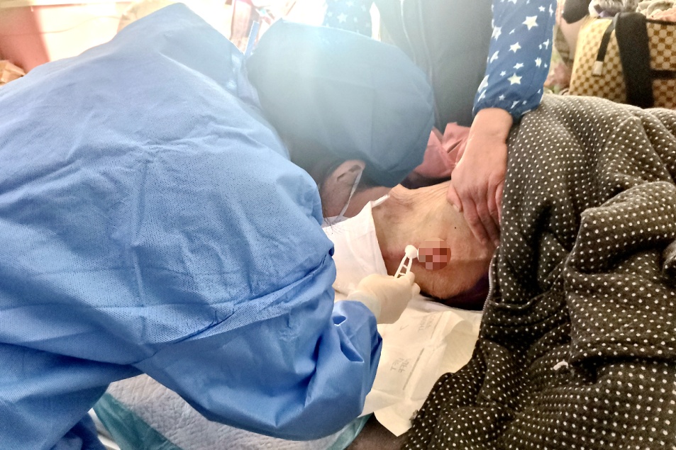 于安丽边操作,边细心安慰:“阿婆,我尽量轻一些,您放松一点,很快就好了。”