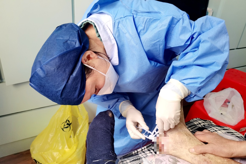目前,枫泾镇社区卫生服务中心共有3名伤口专科护士,均取得了上海市护理学会伤口护理证书。在提供居家伤口护理服务的同时,每周定期开设伤口护理门诊,除了普通伤口换药服务外,主要还提供针对压疮、糖尿病足等疑难伤口的护理,满足辖区居民多样化、多层次的健康需求。