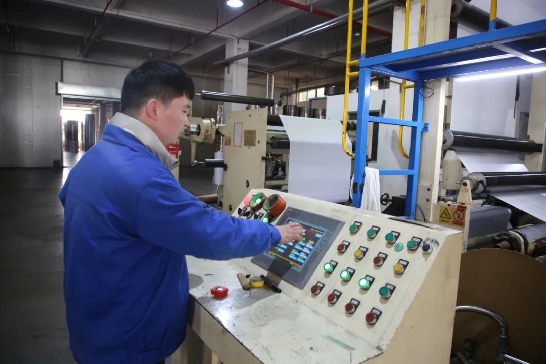 为进一步满足客户的各类需求,同时也为了更好地提升产能,金大科技更新了部分老设备,并投入了一条全新的可涂胶、可印刷一体化生产线,预计今年8月投产。