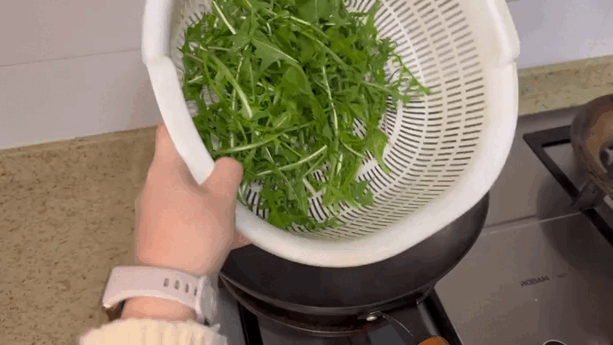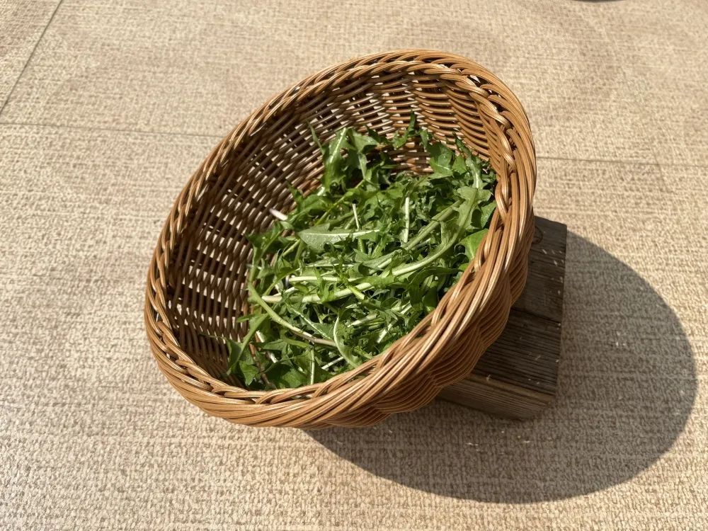 蒲公英洗净,切掉根,平铺晾干表面水分。