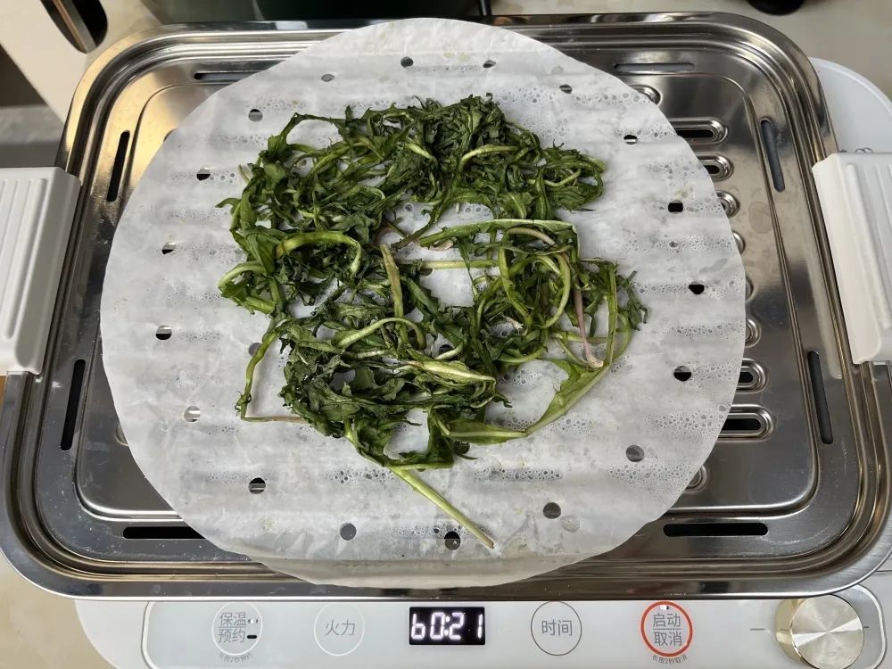 水开后,上锅蒸两分钟。类似制茶中的“杀青”,在去除部分青草味的同时,还能够保持翠绿的颜色。