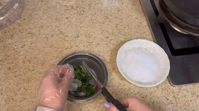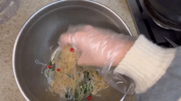 带上手套,抓拌均匀,装盘。