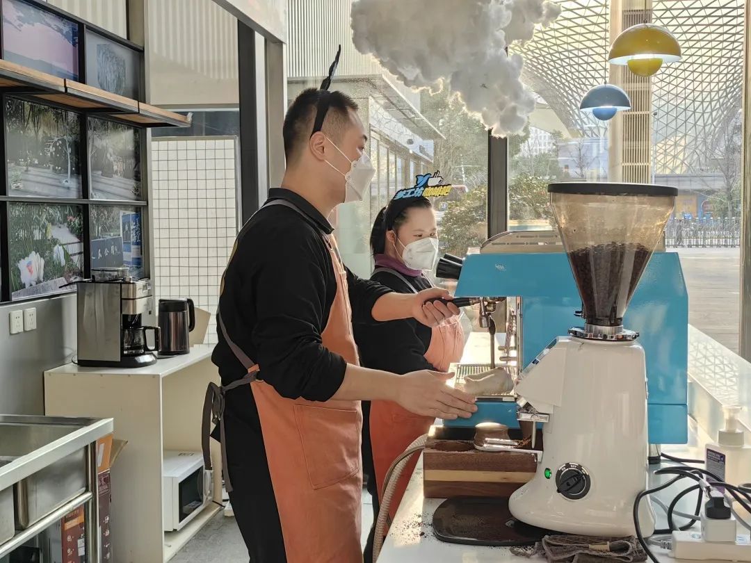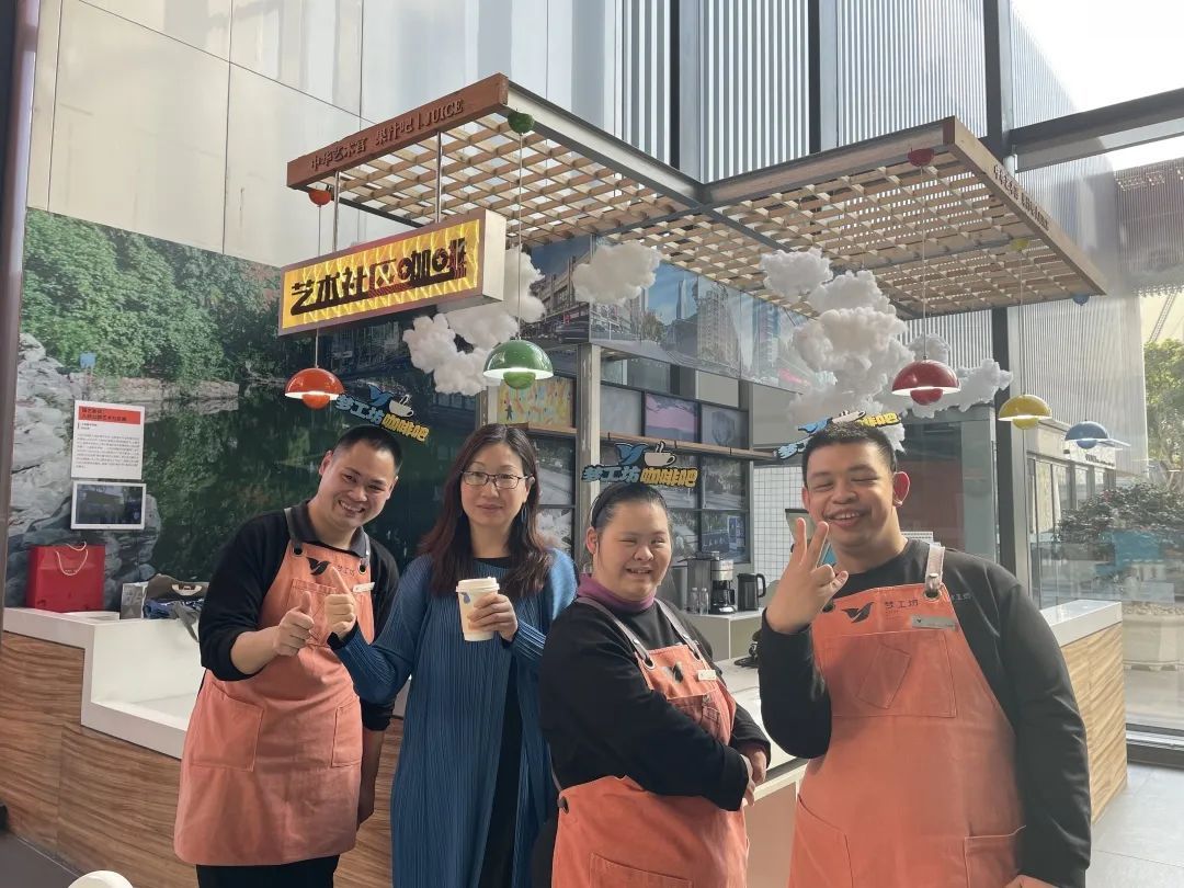 2023年3月7日下午,中华艺术宫(上海美术馆)+社区枢纽站与上海美术学院特邀,在周家渡街道的支持下,上海市浦东新区辅读学校校长王英和她的“孩子们”来到中华艺术宫的“艺术咖啡馆”,孩子们大展身手制作浓醇咖啡,现场温馨和睦。