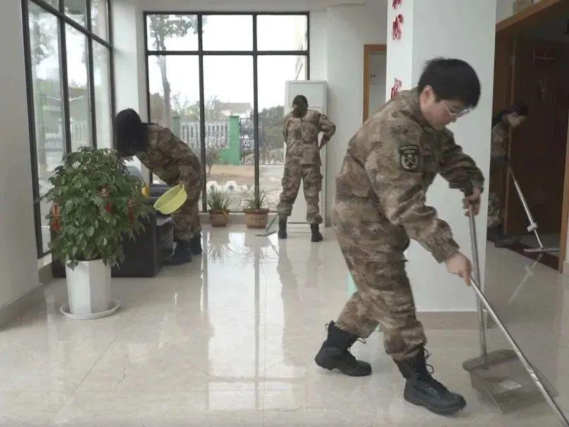 长达一个小时的晨训之后,开始每日早会,主要围绕日常工作、日常卫生检查、巡查任务等内容。会议结束后,每日打扫卫生也是必不可少的一项内容。作为哨长,叶慧玲以身作则、亲力亲为,与哨员们一起打扫卫生,保证哨所内的干净整洁。