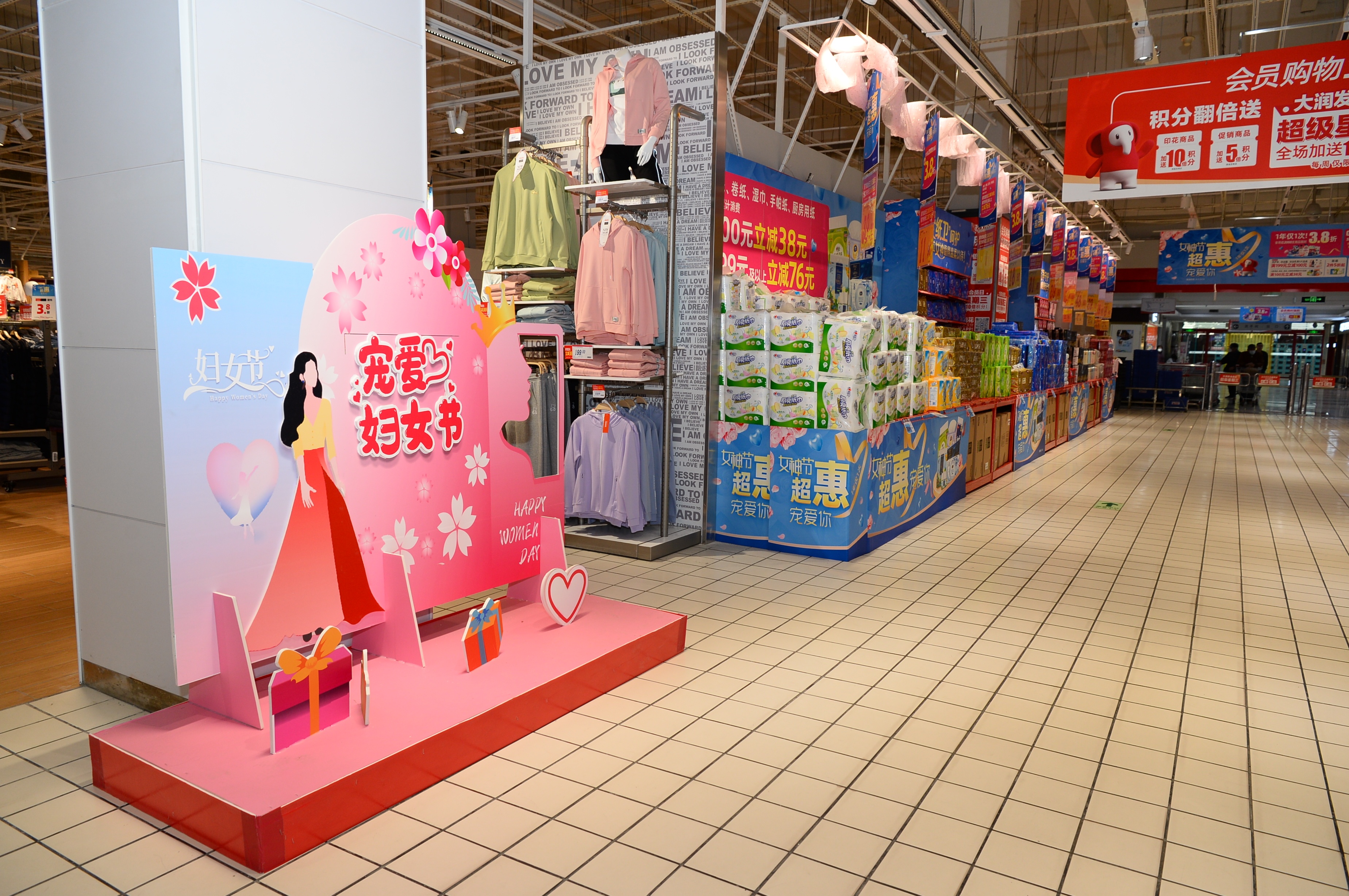 记者从大润发获悉,3月1日至14日,全场超2000支商品限时3.8折,女性会员当天还可积分兑换专享10元优惠券。大润发闸北店客服经理张明祥告诉记者,卫生巾、纸巾、面膜、服饰、内衣等节日限定大促商品近日迎来销售小高潮,增幅20%左右。