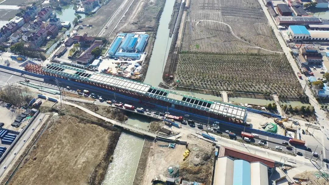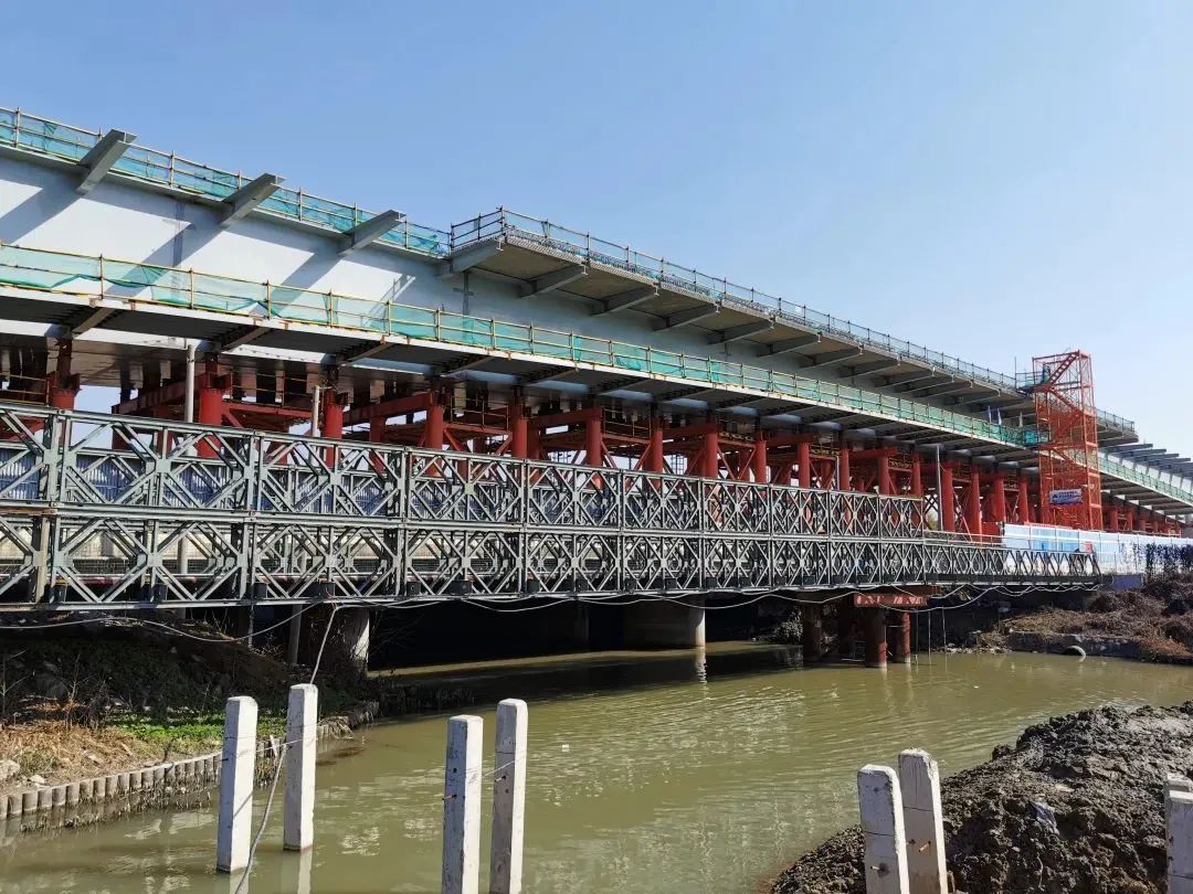 为了在施工期间保证沪太路作为南北交通大动脉的城市服务功能,大桥的建设采用半幅施工、半幅通车的策略,并在2022年3月沿沪太路东西两侧建成了2座跨越新川沙河的钢结构便民桥,用于行人和非机动车的出行。