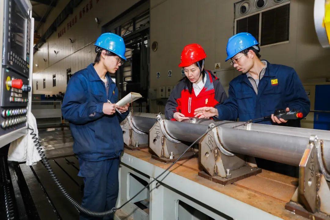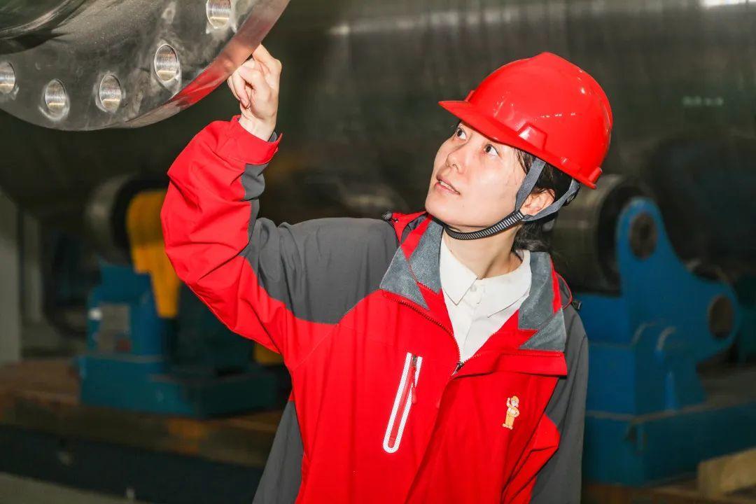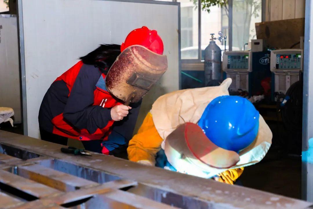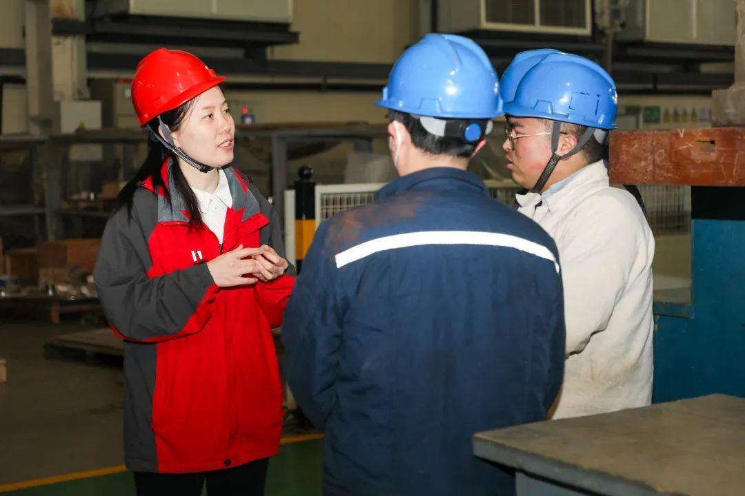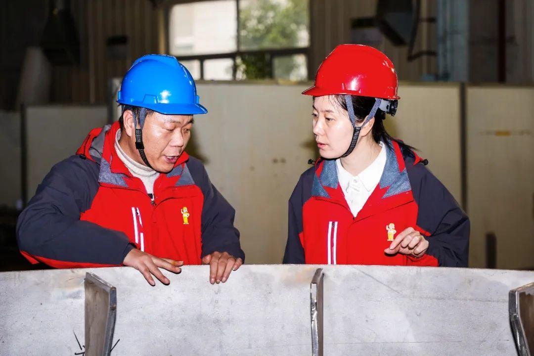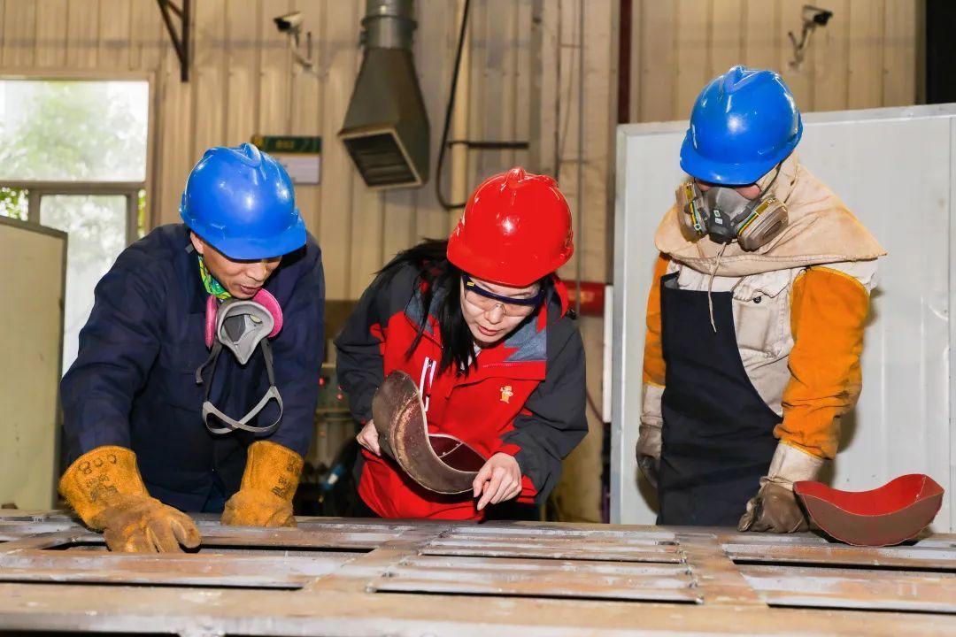 相比起在办公室看图纸,郑海霞更喜欢泡在车间里。每当忙完办公室的工作,郑海霞便会脱下正装、换上车间制服、戴上安全帽,兴致勃勃地来到车间和机械零件、电焊火星打交道,向一线工人们讨教学习,常常在车间一待就是一下午。“车间是一座宝藏,经常在这里泡着,我学到了很多东西!”常年在车间勤学苦练,郑海霞积累了大量的实操经验,也让她在项目研发过程中与工人们配合得十分默契。