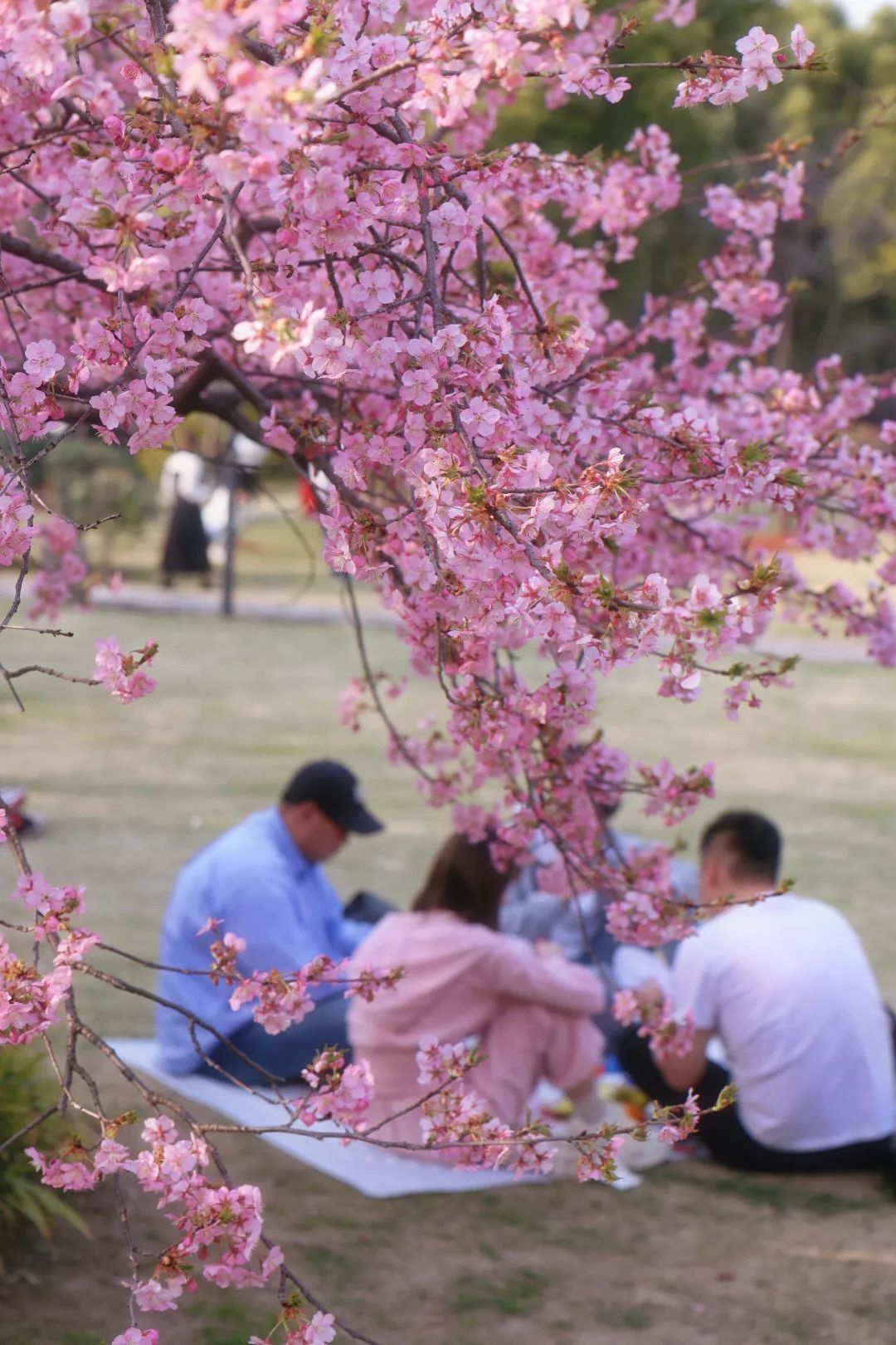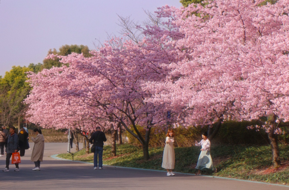 目前,顾村公园的早樱正处于最佳观赏期,大渔樱、河津樱、椿寒樱等竞相绽放,绚烂夺目;迎春樱、大寒樱、修缮寺寒樱也已展露笑颜,渐入佳境。