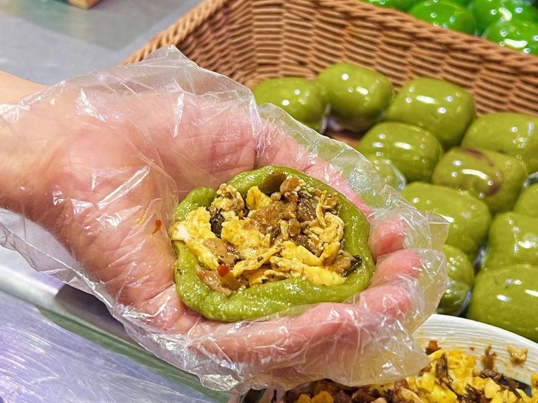 在大部分市民的心中,豆沙馅青团是初心不变的“最爱”,但吃久了也有些“味觉疲劳”。今年,大润发超市在原有5种口味的基础上又新增了7种口味,西梅豆沙、芝士火腿和外婆菜炒鸡蛋也被面点大师傅们巧妙地“揉”进了青团里。