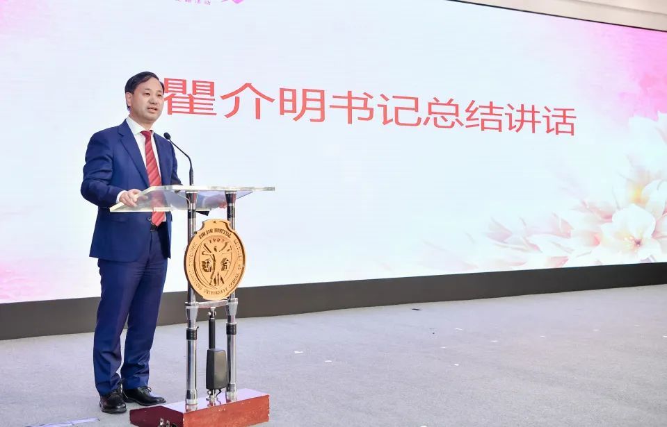 瞿介明书记在总结讲话中表示,瑞金三分之二是女同胞,医院点点滴滴的进步,女同胞占有绝对的主力。瑞金办院的初衷——广聚善爱,瑞金诠释了这样一个宗旨,离不开每一位女性职工的的坚强、勇敢和韧性,令人特别感动和敬佩。从建院之初到现在的116周年,每一个历程,每一个阶段都离不开我们瑞金的女同胞。瑞金所取得的很多项国际医学的奖项,当中有也都饱含着我们同胞的贡献和智慧,正是有每位同胞持续不断的付出,才使瑞金勇立潮头。他表达期许,在当下医学和科技不断竞争的环境中,不进则退,慢进也是退。今年是“十四五”的第三年,是承上启下的一年,也是为了建设国家医学中心高质量发展的一年,在这样一个大背景下面更需要我们女同胞和全院全体员工,一起向善向上向发展,共同打造瑞金医院更加美好的明天。