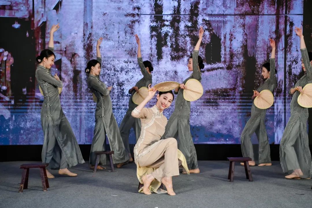 全国三八红旗手、国家一级演员、上海歌舞团有限公司副团长、荣典首席演员朱洁静以及她的团队带来舞剧《永不消逝的电波》片段《渔光曲》。这段“板凳蒲扇舞”传递出来的优雅,将东方美学演绎到了极致。国家一级导演,中国舞蹈家协会理事,上海舞蹈家协会副主席, 上海歌舞团原团长陈飞华和舞剧《永不消逝的电波》主演、上海歌舞剧团荣典首席演员王佳俊为瑞金女神们送上节日祝福。