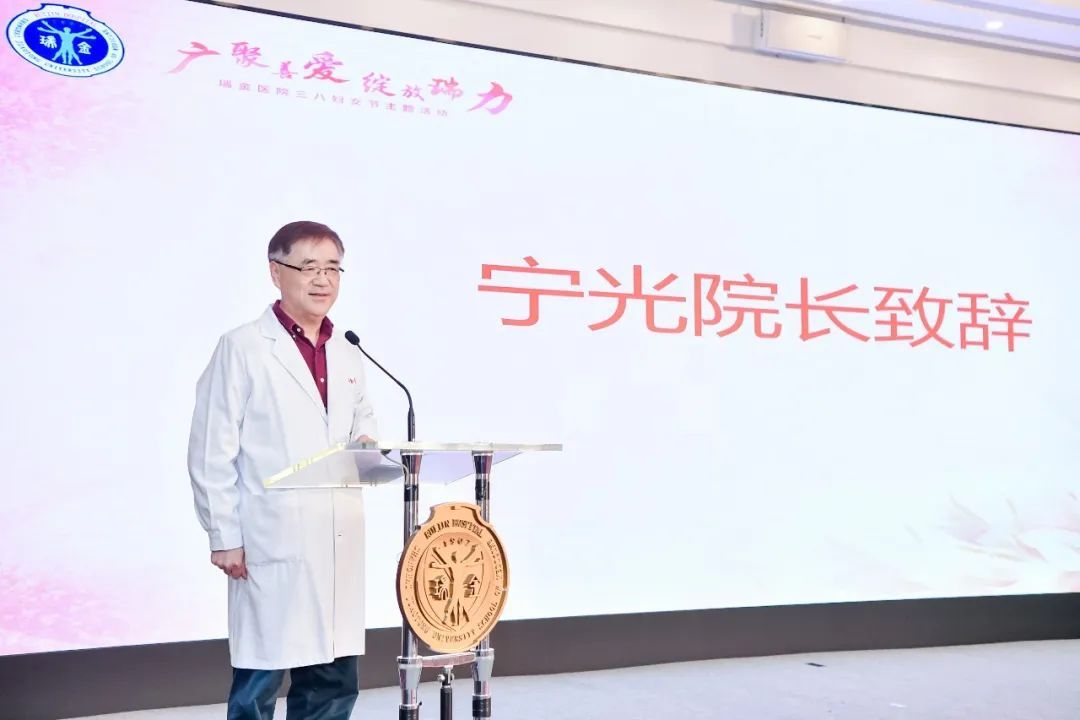 宁光院长代表医院向大家致以节日的问候。他说,瑞金的女同胞,是知性而优雅的。优雅的旗袍台步,尽显外表柔美;精致的插花花艺,彰显内心之美——她们是瑞金最美的风景线。瑞金的女同胞,是高贵而自信的。即便疫情,口罩遮脸,虽未能见“巧笑倩兮”,但“美目盼兮”依旧楚楚动人,在方舱,在定点,安抚多少无助之心。瑞金的女同胞,是果敢而干练的。提灯微笑,照拂人间。她们不爱红装爱武装,如同仗剑行天涯的女侠客。一大批平凡却又不平凡的瑞金女性,在人民和医院最需要的时候,义无反顾投身抗疫一线……瑞金的女同胞,是善爱而广博的,是大爱无边、仁心仁术的。卢梭说,世界就是一本女人的书。瑞金广慈就是一本瑞金女同胞的书,我们愿与你们一起书写瑞金的书,一本让人不能忘怀的善爱之书。