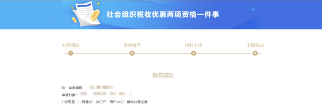 申请信息与材料填写上传完成后,点击【提交】完成网上申请。