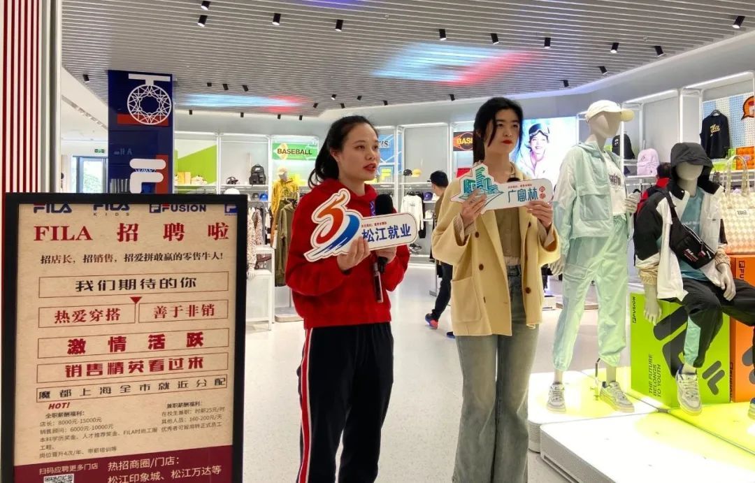 下午1时左右,区人社部门的主播们开始在松江印象城内直播带岗。在来伊份食品、斐乐服饰、六福珠宝等有招聘需求的企业门店里,工作人员详细介绍了招聘岗位、工作环境、企业文化等情况,让求职者可以针对自身情况“有的放矢”。斐乐服饰松江印象城店店长汪平告诉记者,目前店内需要招3名全职导购,会穿搭爱打扮的小伙伴都可以踊跃报名,薪资根据个人情况6000至9000元不等。